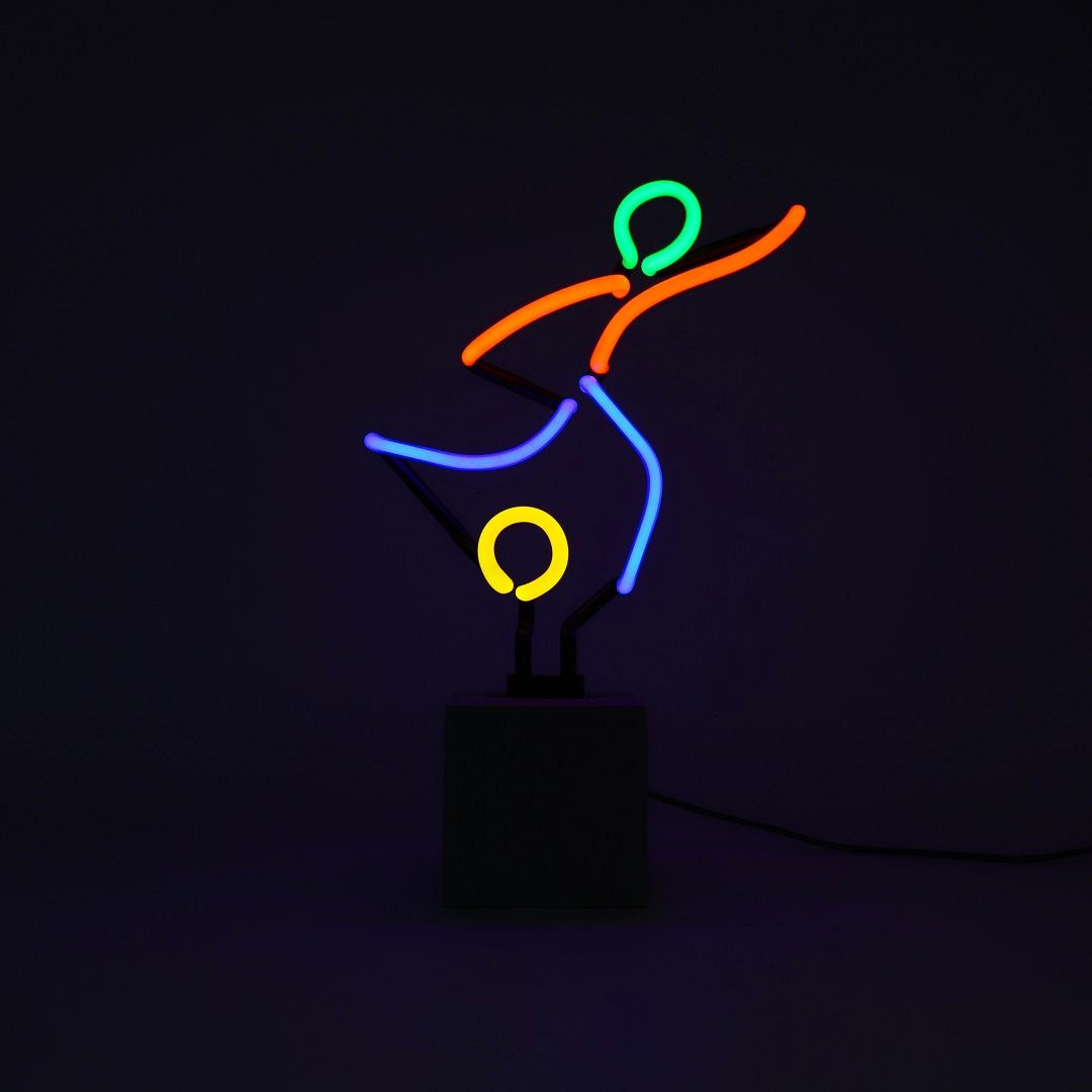 Bringen Sie die Leidenschaft für Fußball in Ihr Zuhause mit dem Glas Stand-Neon 'Fußballspieler'. Dieses beeindruckende Neon Schild in leuchtenden Multi-Color Neonfarben zeigt einen dynamischen Fußballspieler in Aktion und ist ideal für: