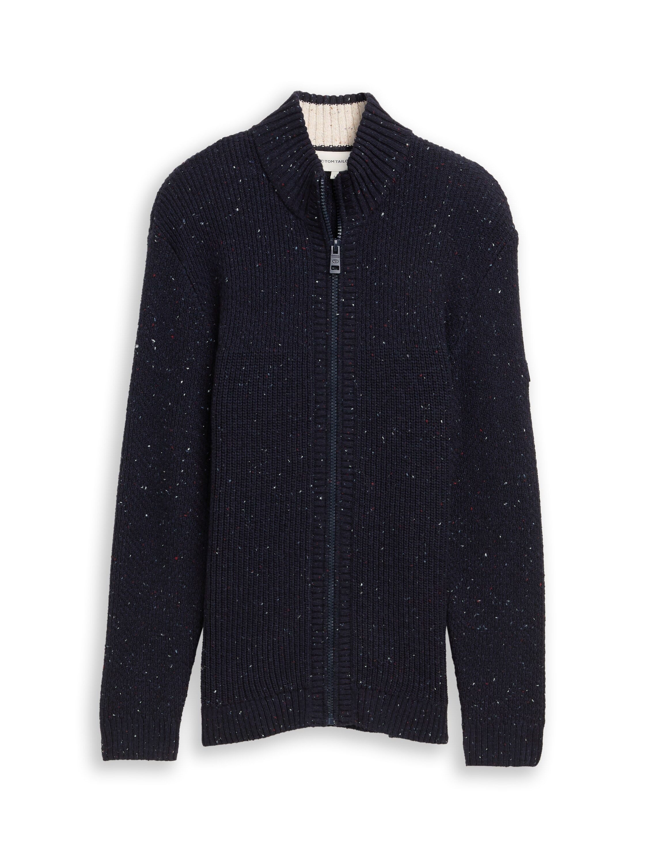 * Strukturierte Stickjacke in Melange-Optik mit Stehkragen und Reißverschluss. Mit Logo-Badge am oberen Ärmel und Rippbündchen am Saum.