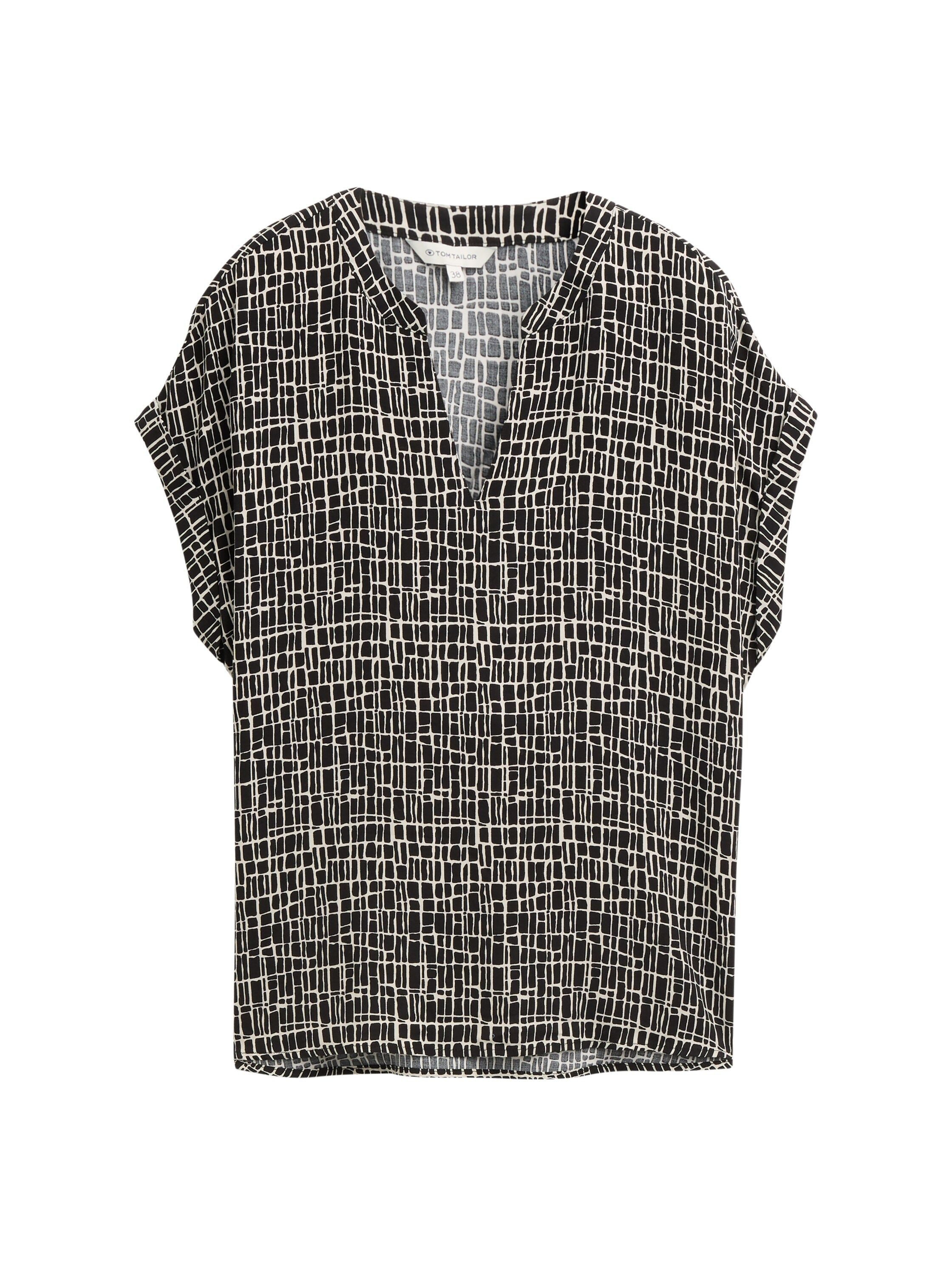 Die Kurzarmbluse von TOM TAILOR ist eine unkomplizierte Antwort auf die Frage "Was ziehe ich bloß zum Business-Meeting an?". Diese Bluse hat einen V-Ausschnitt und ist taillenbedeckend sowie locker geschnitten, sodass der Oberkörper locker betont wird.
