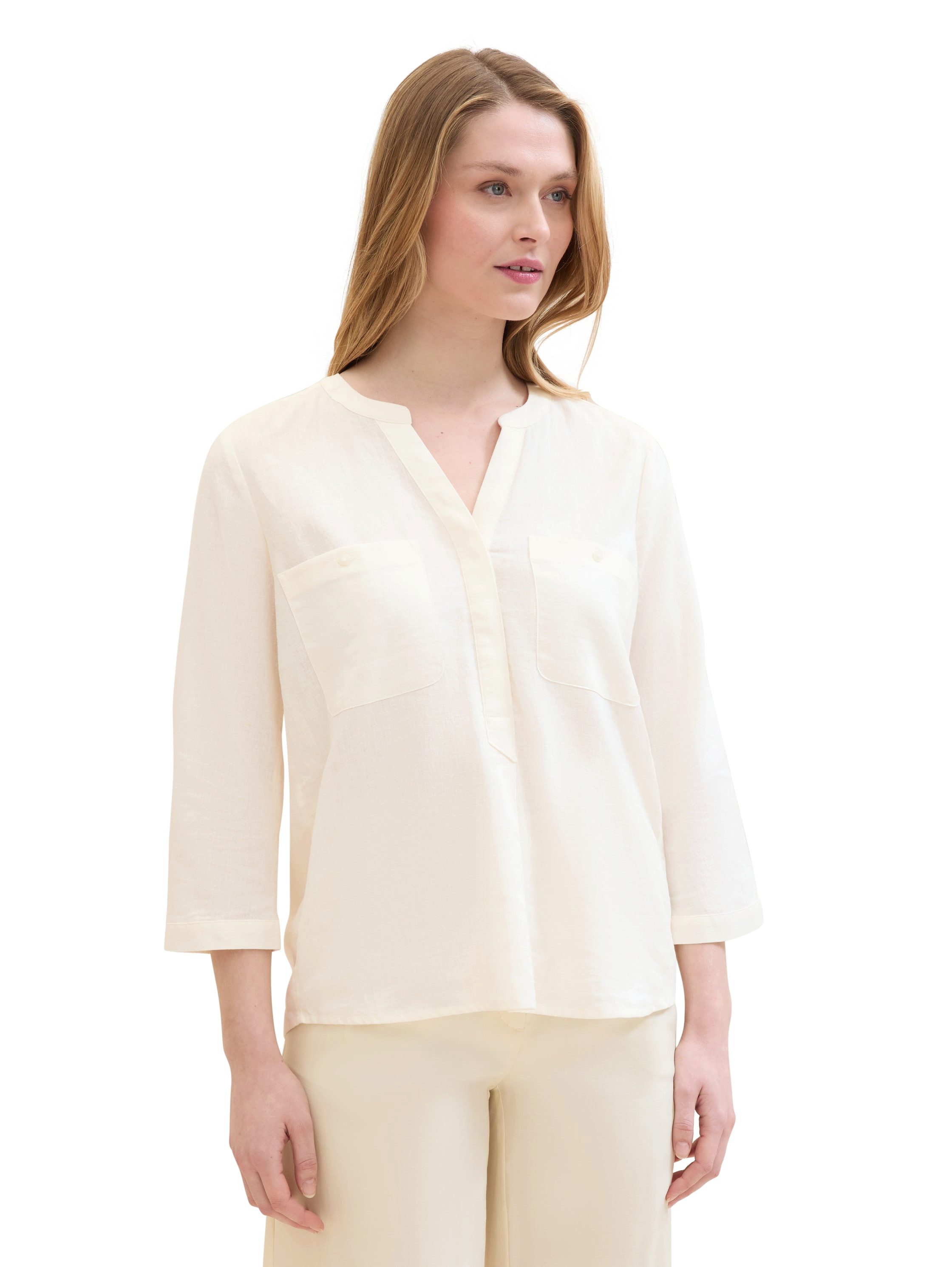Schau dir die Schlupfbluse von TOM TAILOR mal genauer an. Die Schlupfbluse hat eine Knopfleiste. Diese Bluse hat einen V-Ausschnitt und ist normal sowie komfortabel geschnitten, sodass deine Bewegungsfreiheit nicht eingeschränkt wird.