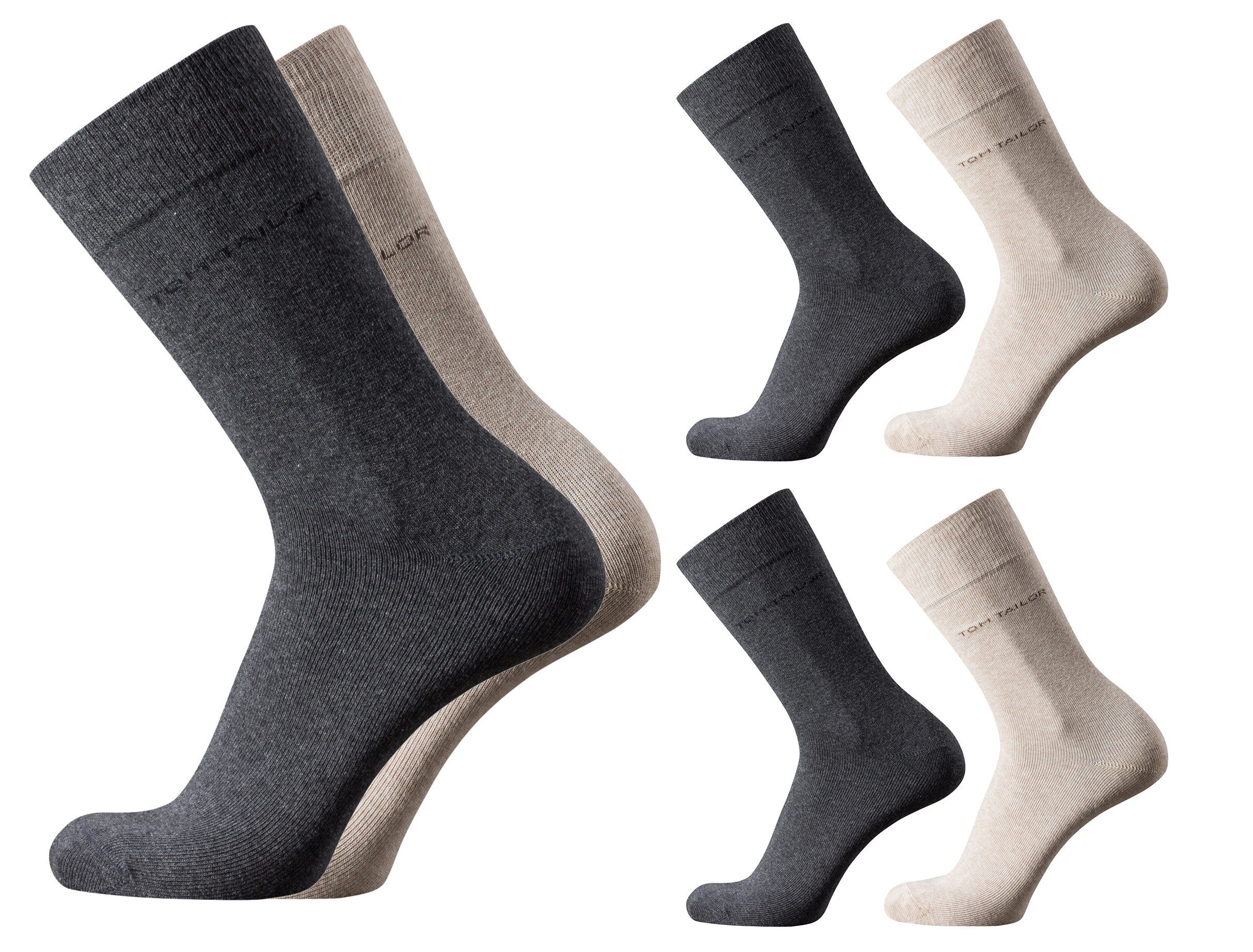Für alle, die täglich über sich hinauswachsen und dabei immer sie selbst bleiben.Die das Gute im Leben suchen und finden.Für alle, die mutig sind und andere ermutigen. Die selbst Farbklecks sind, wenn die Nachrichten auch tiefschwarz sind.Für alle, die mittem im Leben stehen und mit ihrer Lebensfreude anstecken, gibt es nur eine richtige Entscheidung. TOM TAILOR ist bunt wie das Leben selbst!!!Tom Tailor Herren Socken 4er Pack uni basic mix dunkelgrau + beigemit dem markentypischen Schriftzug am Schaft. Der hohe Baumwollanteil sorgt für eine perfekte Passform und ein bequemes Tragegefühl.