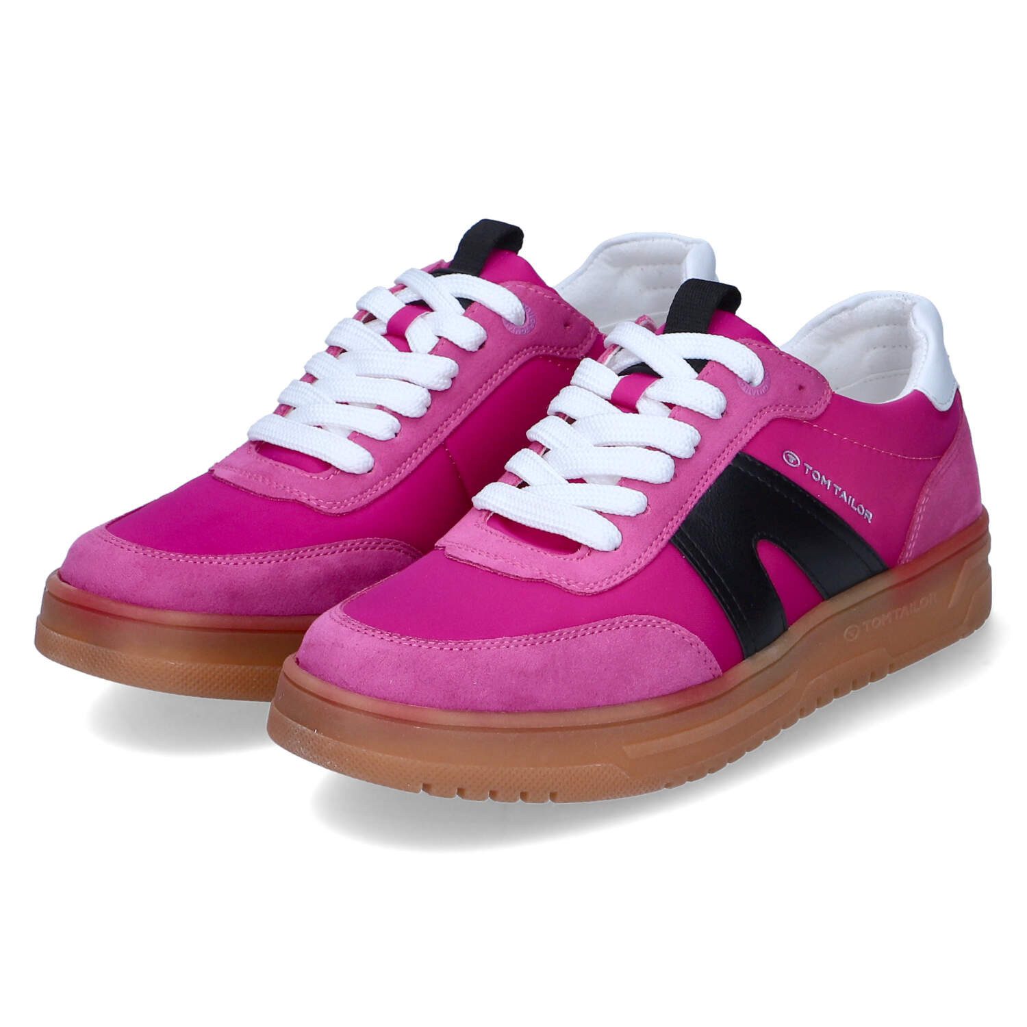 Erleben Sie den sportlichen Chic der Tom Tailor Damen Low Sneaker in einem frischen Pink, gefertigt aus einem hochwertigen Textil-Synthetik-Mix. Diese Schnürschuhe sind nicht nur ein modisches Statement, sondern bieten auch hervorragenden Tragekomfort für den Alltag.