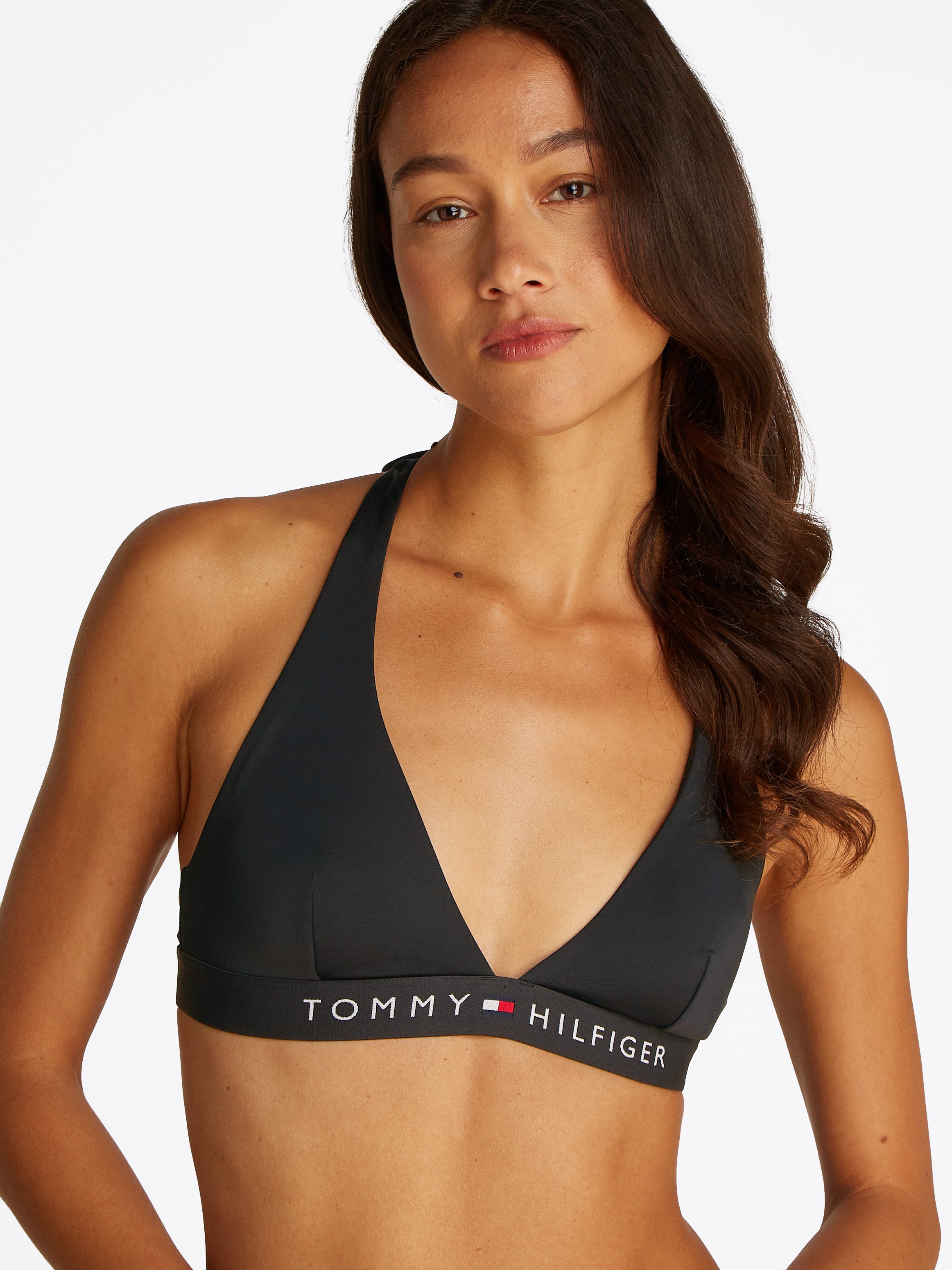 Wie wäre es mit diesem Triangel-Bikini-Top von Tommy Hilfiger Swimwear? Das Gewebe aus Polyamid ist elastisch. Dieses Bikini-Oberteil ist ein Multitalent. Kombiniere es mit einem Longsleeve und leichten Sneakern, um dich stilvoll am Strand und Pool zu präsentieren.