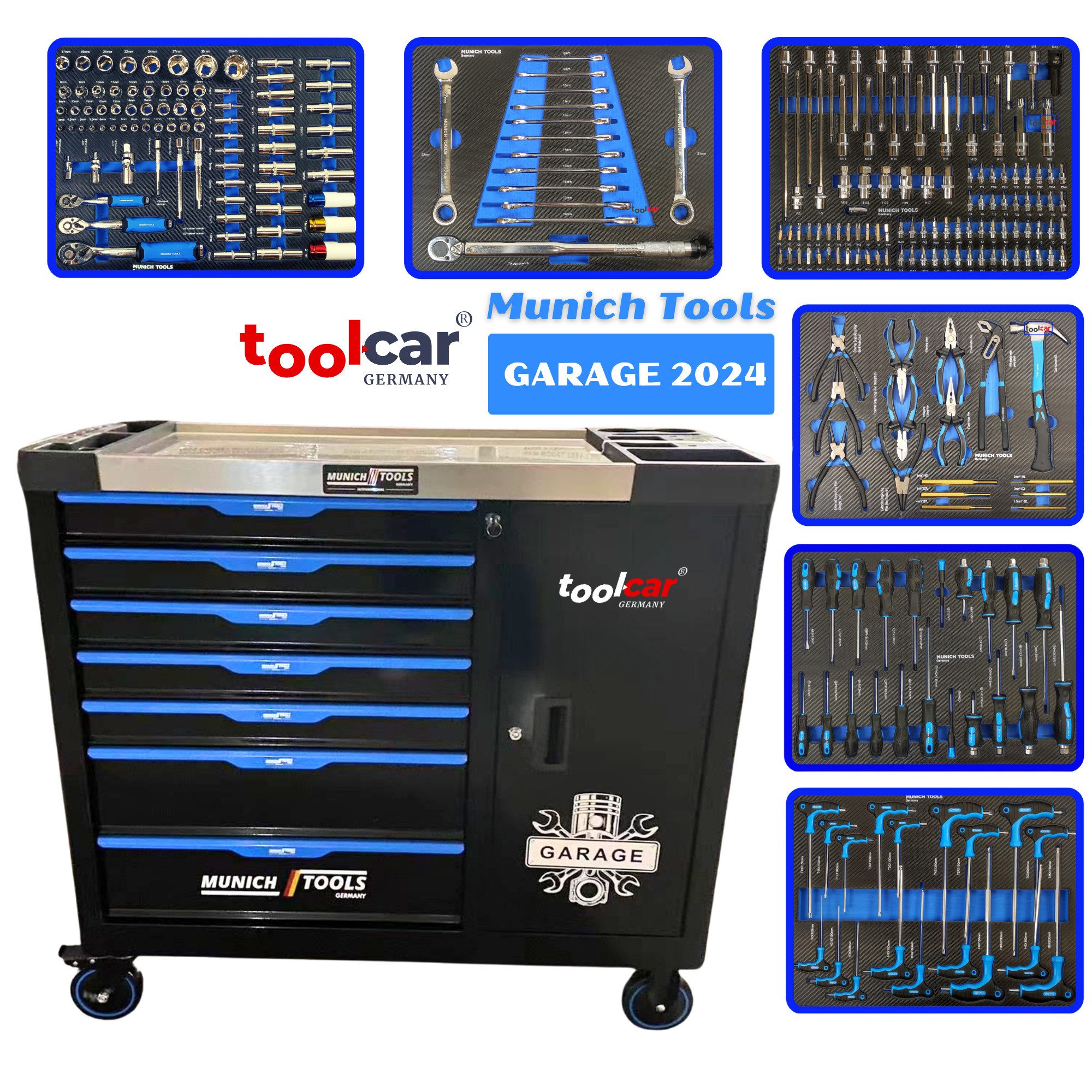 Dieser aus verstärktem Stahl gefertigte Werkzeugwagen mit 7 Schubladen und großen Schrank bietet eine große Auswahl an hochwertigen Werkzeugen. Große Rollen (zwei feststehende/zwei drehbare mit Fußbremsen) und ein sicheres Verriegelungssystem sorgen dafür, dass die Schubladen geschlossen bleiben, was das Bewegen dieser Wagen sicher und einfach macht. Kugelgelagerten Schubladenführungen mit Vollauszug und Soft-Close-System ausgestattet. Werkzeugzubehör aus Chrom-Vanadium-Stahl.