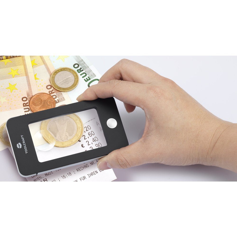 4 Ultra LED's · Lupe: 75 mm x 43 mm 2fache Vergrößerung · Linse: 23 mm Durchmesser 4fache Vergrößerung