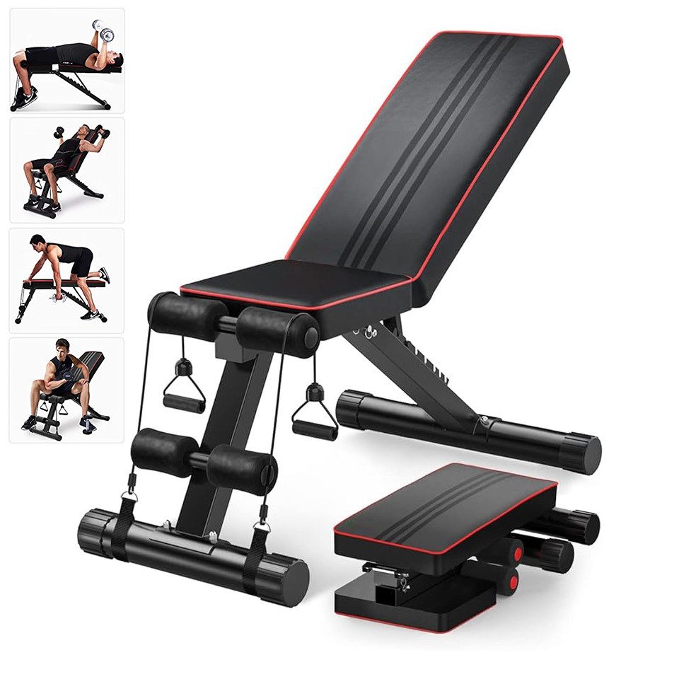 Multidirektionales Training Die Rückenlehne der multifunktionalen Fitness-Hantelbank verfügt über 7 Positionseinstellungen. Diese verschiedenen Positionen können auf verschiedene Körperteile trainiert werden: Bauch, Rücken, Taille, Beinstreckung usw., um Ihren unterschiedlichen Fitnessbedürfnissen gerecht zu werden. Es gibt auch elastische Seils, mit den Sie Ihre Armmuskeln trainieren können.