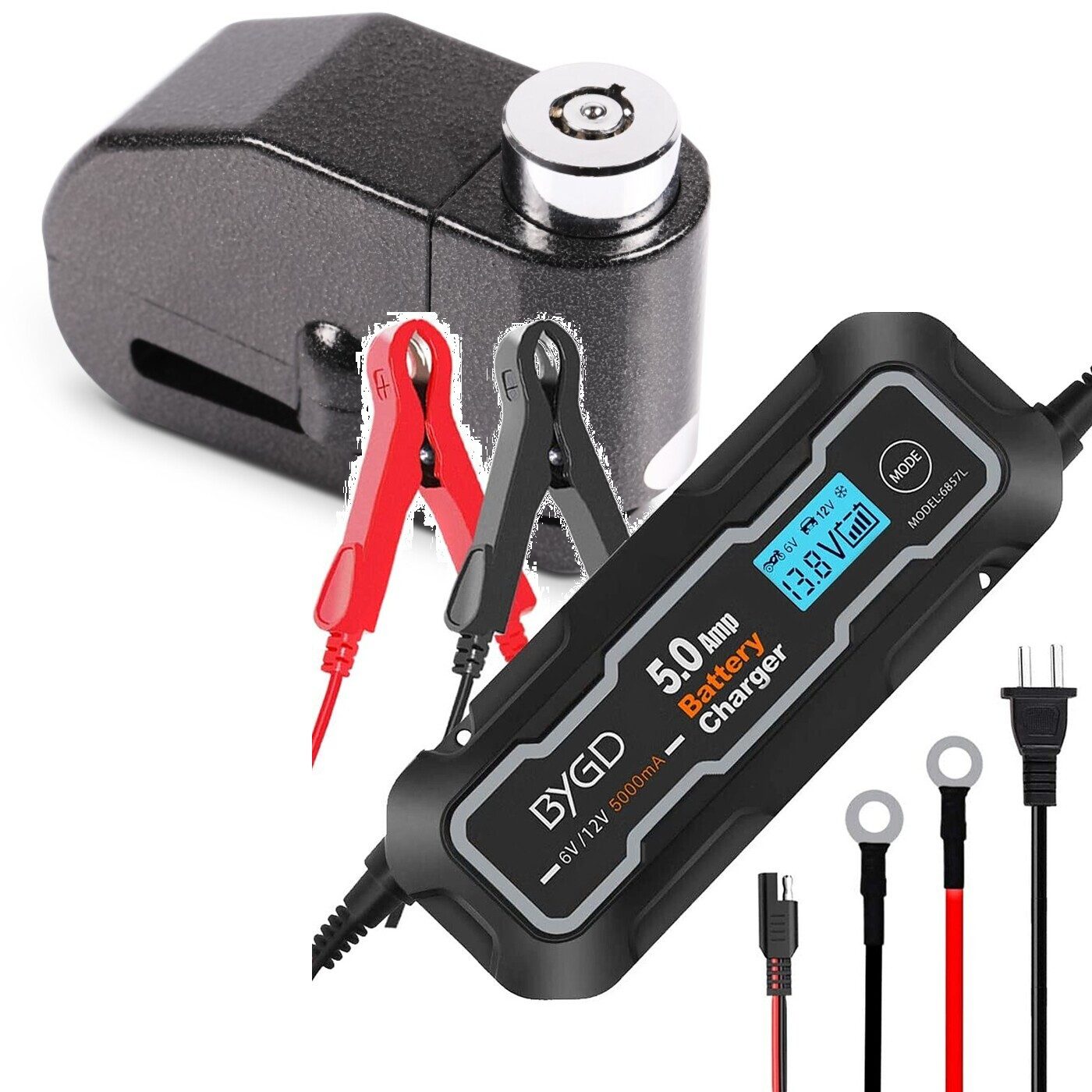 Sitzbank Set: Bremsscheibenschloss Alarm 120dB Diebstahlschutz + Batterie Ladeg
