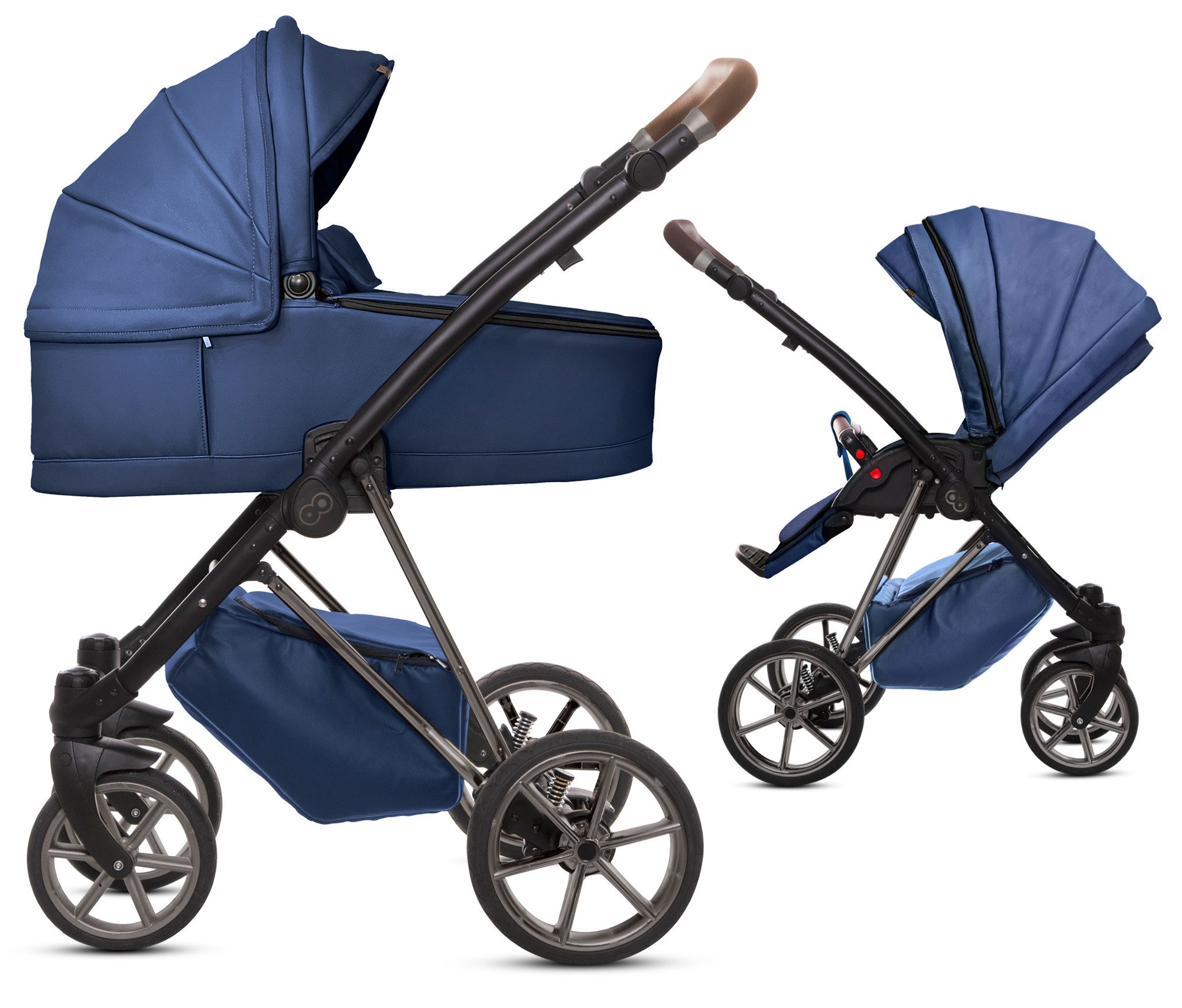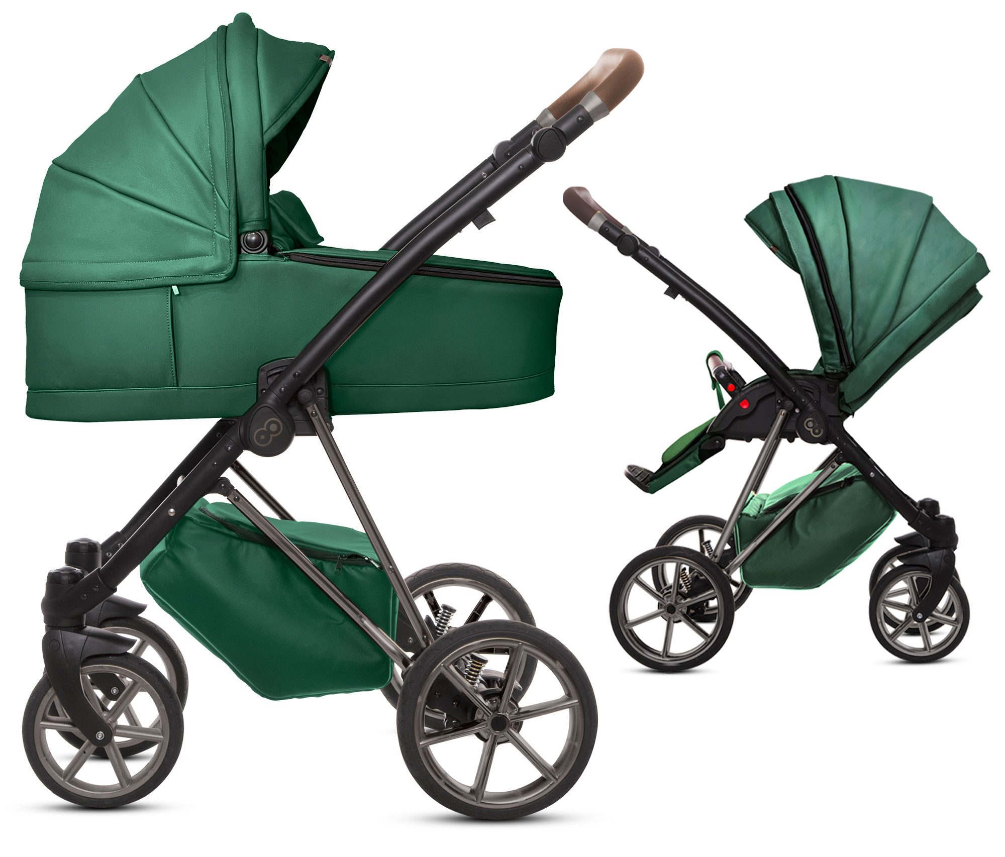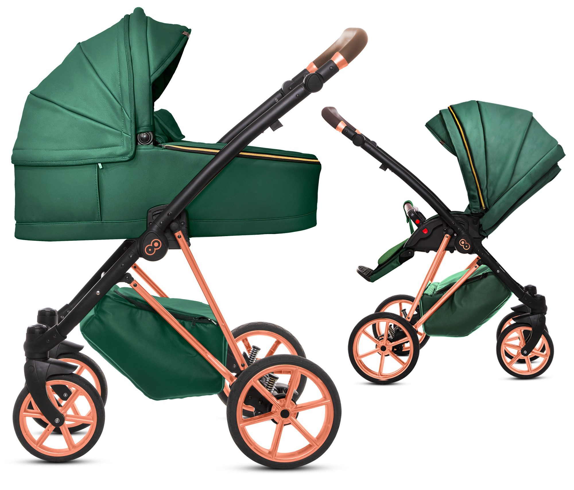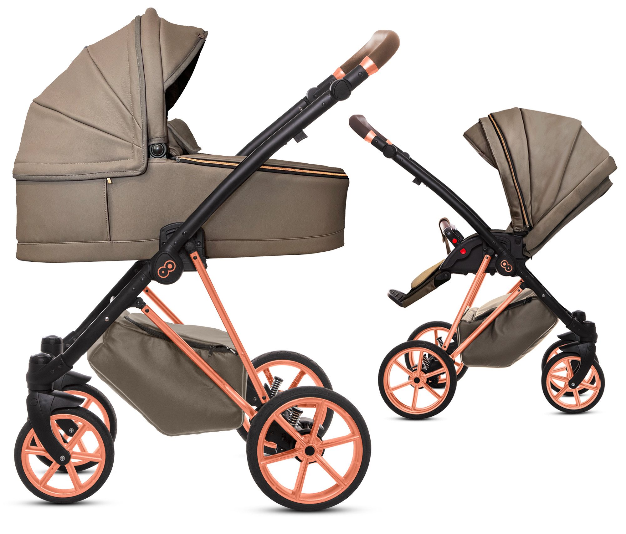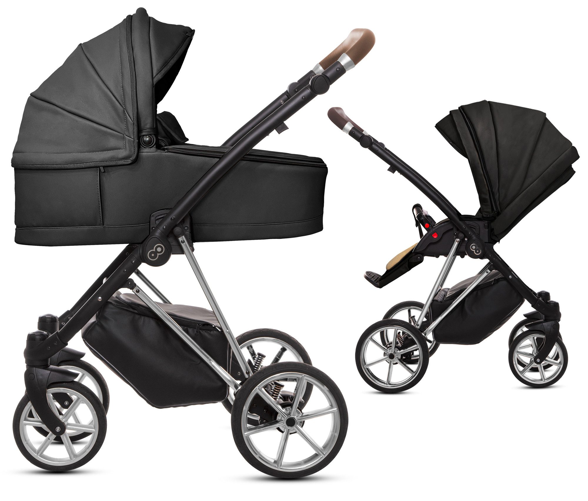 Jetzt mit Musse Royal zeitlos und ein Hingucker gleichzeitig sein! Das Gestell ist hochglänzend und somit ein absoluter Eyecatcher. Die Aufsätze in einfarbigen, hochwertigen Kunstleder Bezügen komplettieren den Look. Zeitlose Optik und viele durchdachte und praktische Extras, die Sie im Alltag überzeugen. So kann der 2 in 1 Kinderwagen Musse Royal in der Stadt wie auch in Wald und Wiesen überzeugen, durch Räder, die sich an jeden Untergrund anpassen und seine Teleskopfederung. Der Kinderwagen erfüllt Ihre Erwartungen und übertrifft die ihres Kindes.