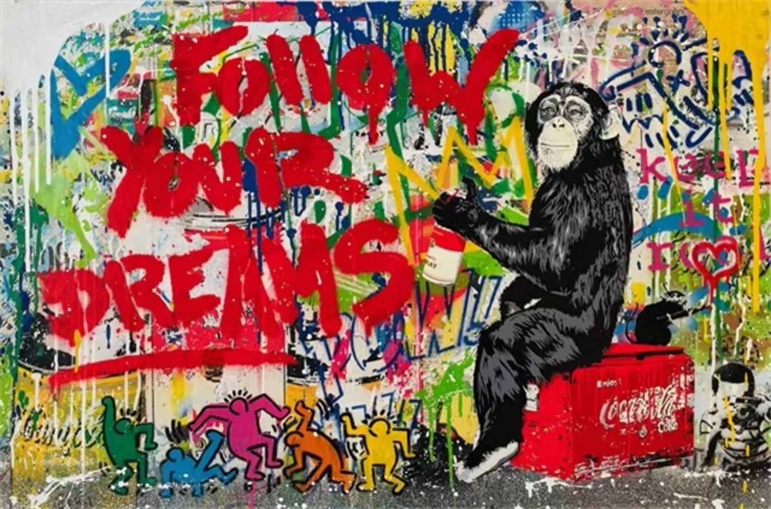 Bangsy Art - Graffiti Kunst - abstrakte Motive - (Leinwandbild XXL), Farben: Farben: bunt - Größe: 20x30cm