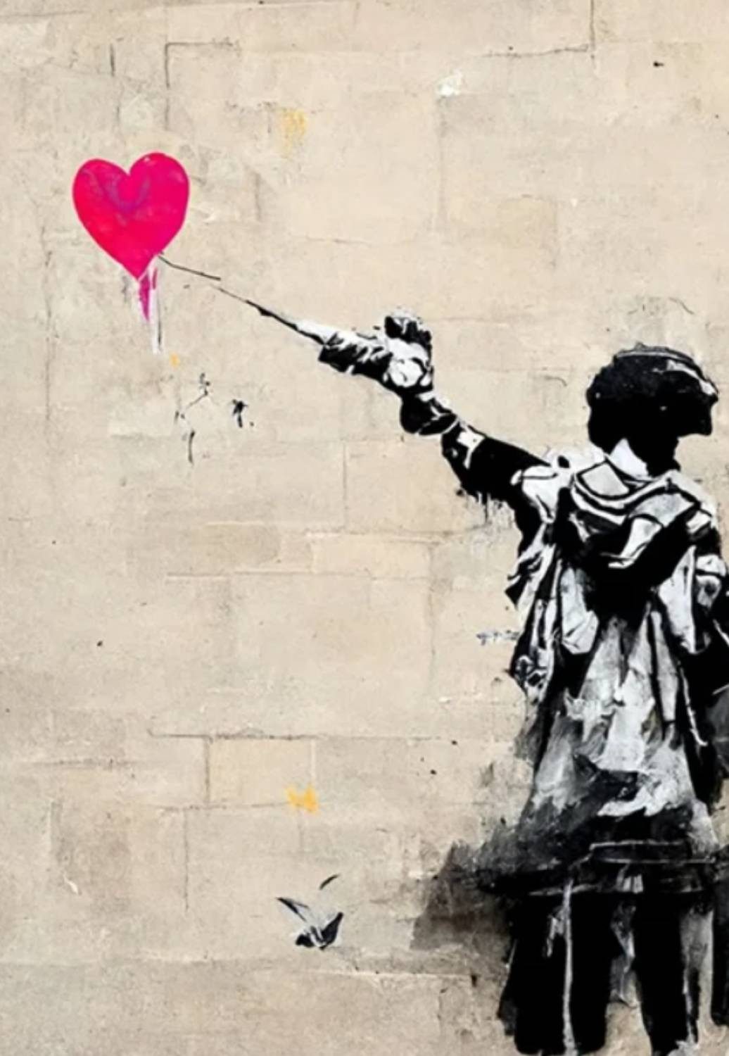 Bangsy Art- Graffiti Kunst - Street Art - (Leinwandbild XXL), Farben: Farben: Weiß, rot, blau, beige - Größe: 20x30cm