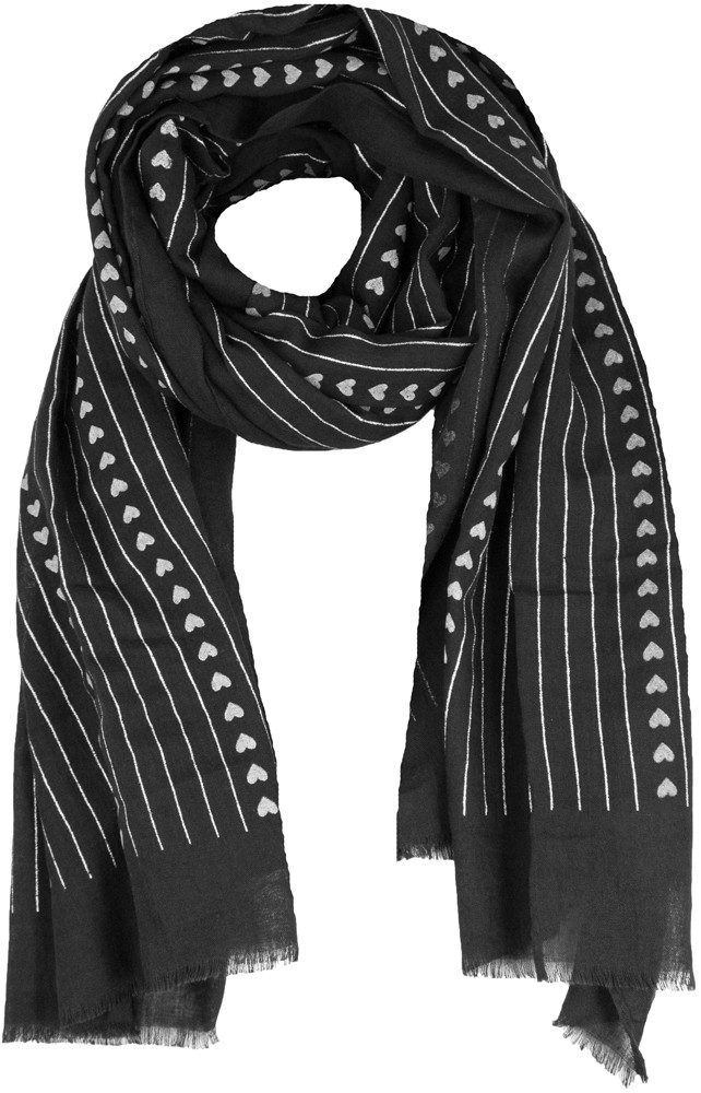 Stilvolles Design: Schwarzer Schal mit feinen weißen Streifen, funkelnden Glitzereffekten und charmanten Herzmotiven für einen femininen Look
