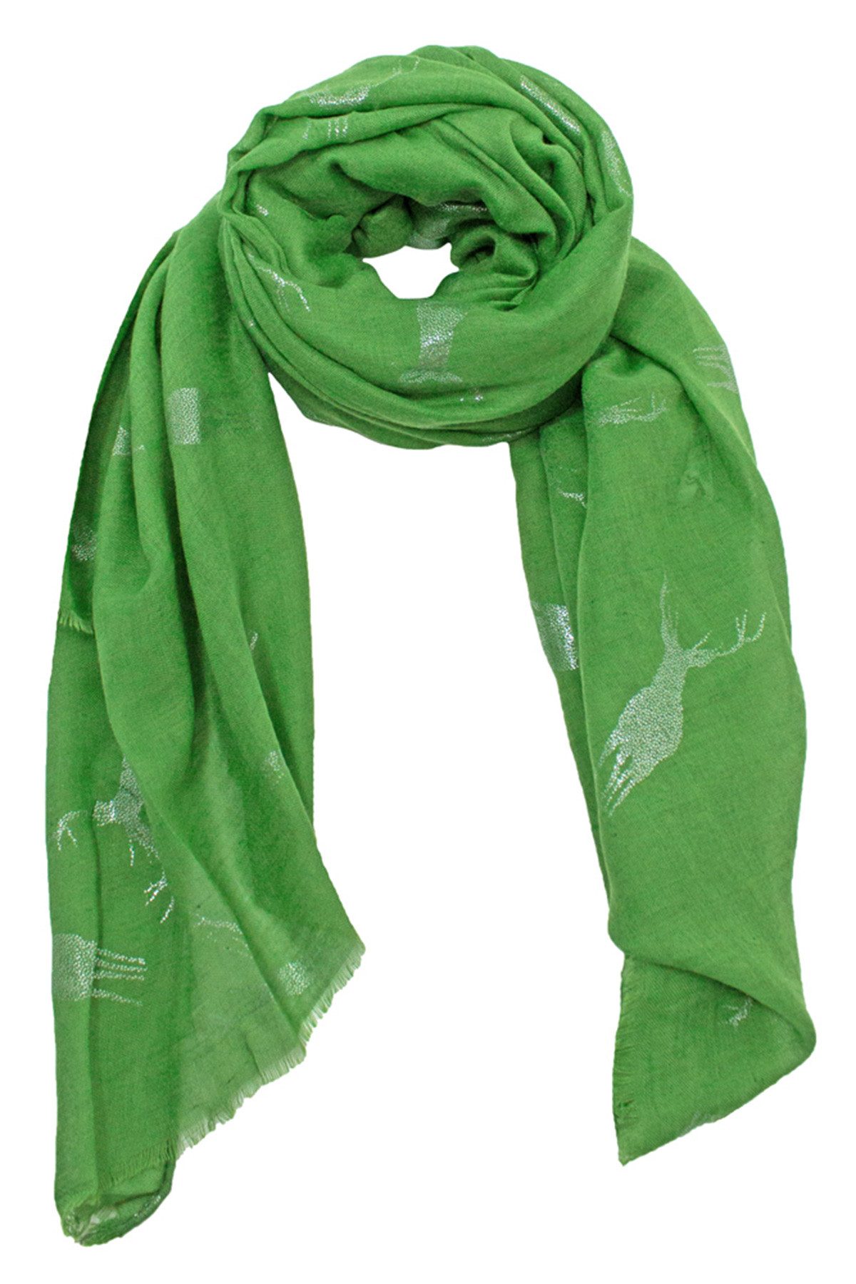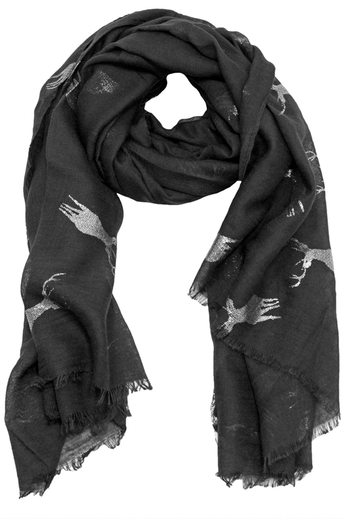 Lieferumfang: ein Halstuch - Toller Trachtenschal mit schlichtem Look und glänzenden Glitzer-Hirsch Highlights - Viele Stylingmöglichkeiten
