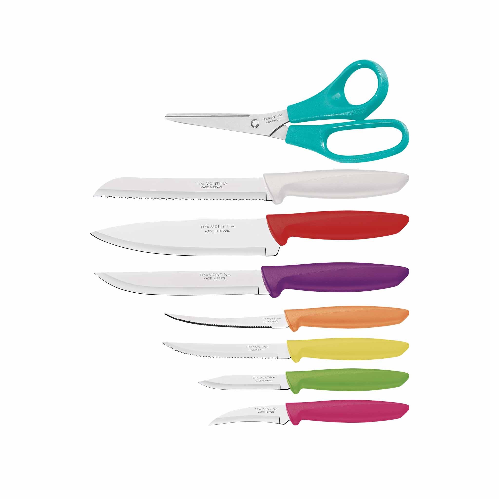 Lieferumfang | 1x Schälmesser 1x Obst-/ Gemüsemesser 1x Tomatenmesser 1x Steakmesser 1x Küchenmesser 1x Brotmesser 1x Kochmesser 1x Küchenschere |