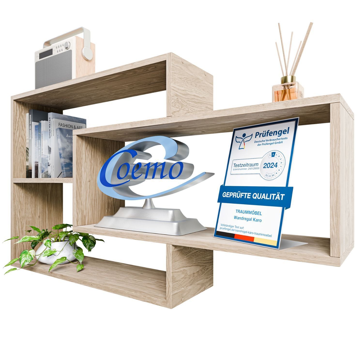 Das moderne Wandregal von Karo ist einfach zum Verlieben. Erhältlich in den Mattfarben Weiß, Schwarz, Anthrazit und Natur verleiht es dem Wohn- / Essbereich Eleganz. Die Baukastenform mit klaren Linien strahlt in klassischem Design. Wenn es modern, elegant und zeitlos sein soll, ist das Regalsystem Karo genau das Richtige. Die Karo Wandregale bieten eine tolle Optik und eignen sich besonders für Dekorationen, Blumen, Vasen, Bücher, Kerzen, einfach alles was Ihnen beliebt. Das Wandregal bietet verschiedene Möglichkeiten und Kombinationen an. Ob erweitert als Wohnwand, Bibliothek oder im Essbereich für Geschirr, das Schweberegal ist einfach ein praktisches Mehrzweckregal mit verschiedenen Nutzungsmöglichkeiten und Ideen. Du kannst darin deine Büchersammlung, Pflanzen und andere Dekorationsgegenstände ausstellen. Mit einer Vielzahl von Farboptionen findest du sicher die perfekte Ergänzung für deine Raumgestaltung. Kombiniere es, um einen individuellen Look zu kreieren, der deinem Raum neues Leben einhaucht. Egal, ob du eine neutrale Варианты oder etwas Lebendigeres suchst, wir haben eine Farbe, die deinem Geschmack und Stil entspricht. Zusammenfassend lässt sich sagen, dass dieses Hängeregal eine stilvolle, funktionelle und platzsparende Option für jeden Raum ist. Es ist perfekt für die Aufbewahrung und Präsentation all deiner Gegenstände, und mit einer Vielzahl von Farboptionen zur Auswahl, kannst du eine persönliche Atmosphäre schaffen. Die Karo Serie ist ein vielseitig einsetzbares Hängeregal zum günstigen Preis. Einfache und kinderleichte Montage dank bebilderter Anleitung.