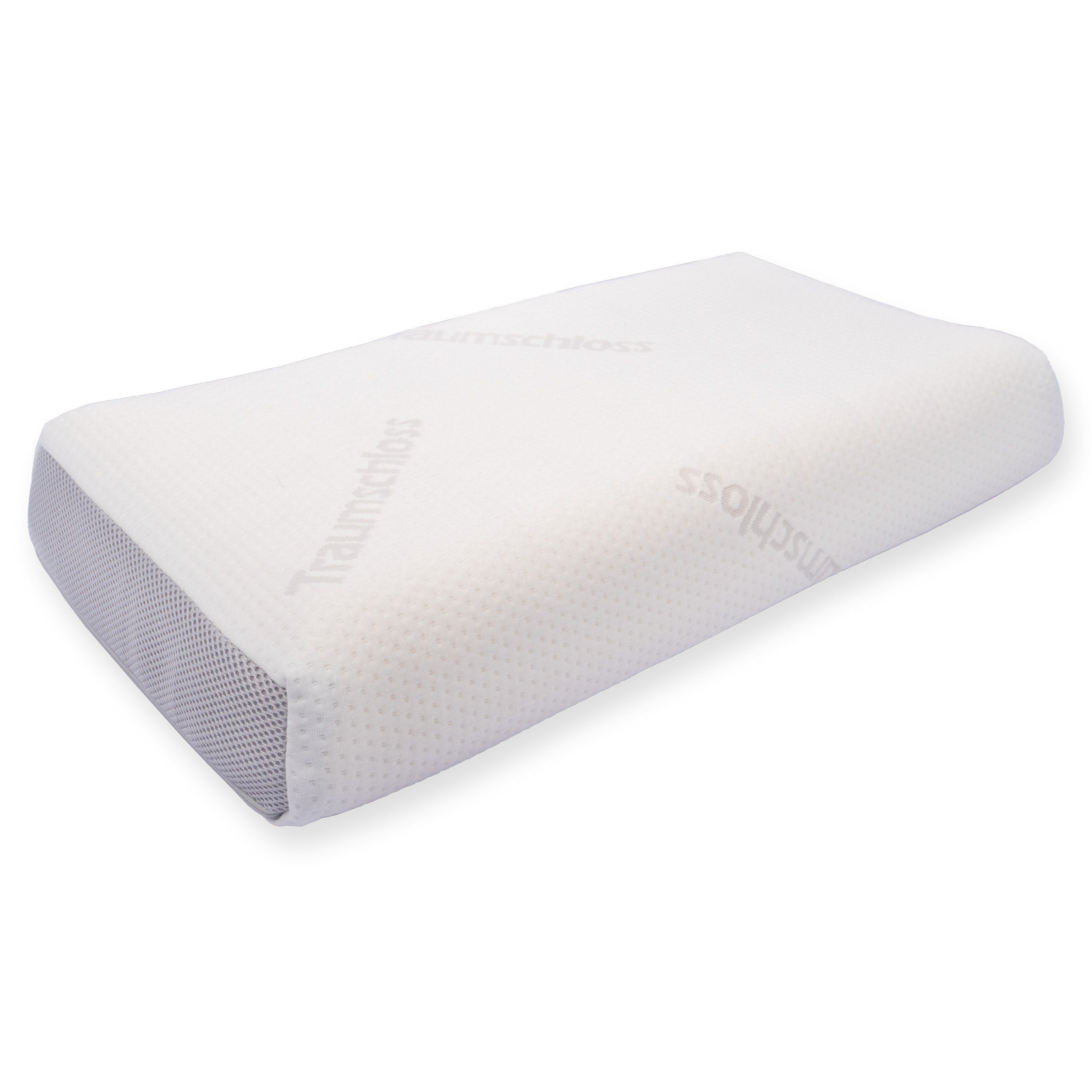 Entdecken Sie das Traumschloss Comfort Nackenstützkissen - unser meistverkauftes Modell und ein echter Dauerbrenner! Mit seinem hochwertigen Viscoschaumkern (RG50) im 3D Würfelschnitt bietet es eine hohe Elastizität und sorgt für eine besondere Bequemlichkeit während des Schlafens. Besonders in der Seitenlage wird das empfindliche Ohr sanft und ohne Druck aufgenommen, dank der ausgeklügelten Formgebung.