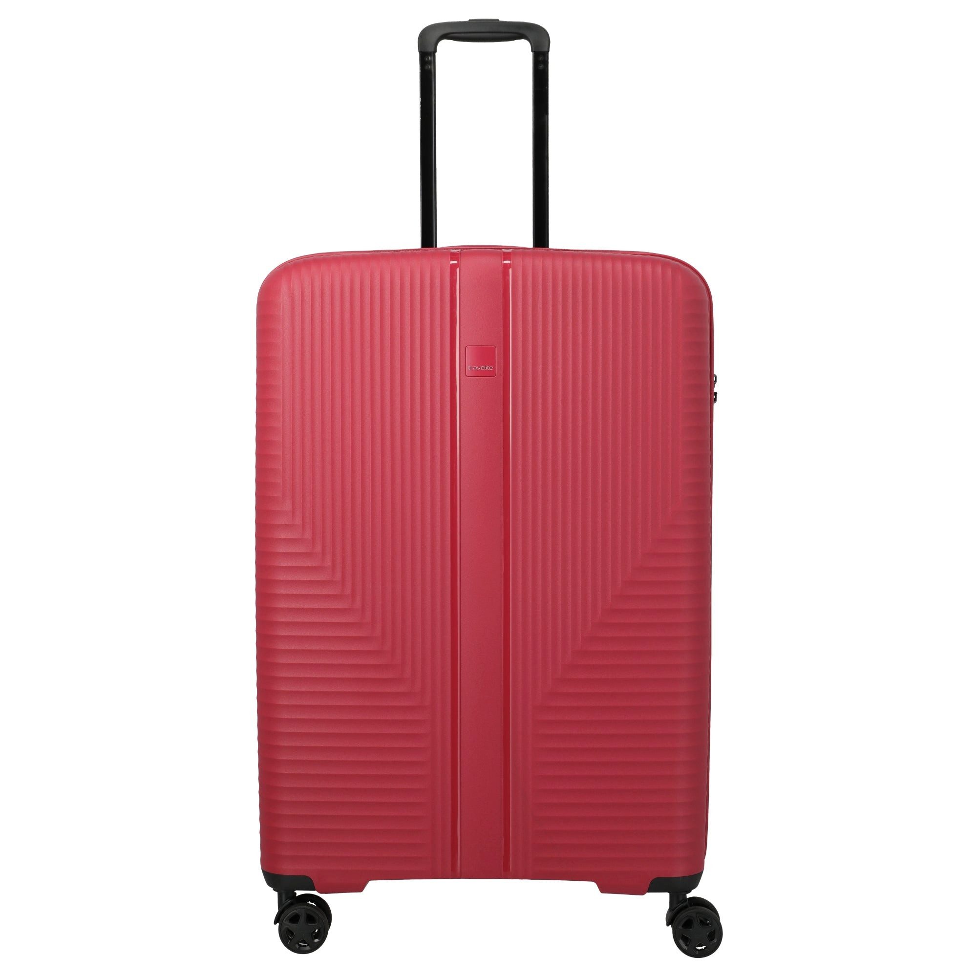 Der Travelite Air Stripe 4-Rollen-Trolley in rot ist ein zuverlässiger Begleiter für längere Reisen, der mit seinem durchdachten Design und robustem Material überzeugt. Mit einem Volumen von 104 l bietet er ausreichend Platz für umfangreiches Gepäck, ohne dabei unnötig zu belasten. * Leichtes Polypropylen-Gehäuse – sorgt für hohe Stabilität bei geringem Gewicht (3,9 kg) und erleichtert das Handling * Vier leise Doppelrollen – ermöglichen ein sanftes und wendiges Rollen auf verschiedenen Untergründen * Verstellbarer Teleskopgriff und seitlicher Griff – bieten flexible Trage- und Ziehmöglichkeiten * Versenktes TSA-Schloss – gewährleistet kontrollierte Sicherheit bei Reisen ins Ausland * Innenausstattung mit Packwänden und Spanngurten – sorgt für eine geordnete Unterbringung des Inhalts Der Travelite Air Stripe 4-Rollen-Trolley in rot ist ideal für anspruchsvolle Reisende, die Wert auf Funktionalität und zuverlässige Sicherheit legen.