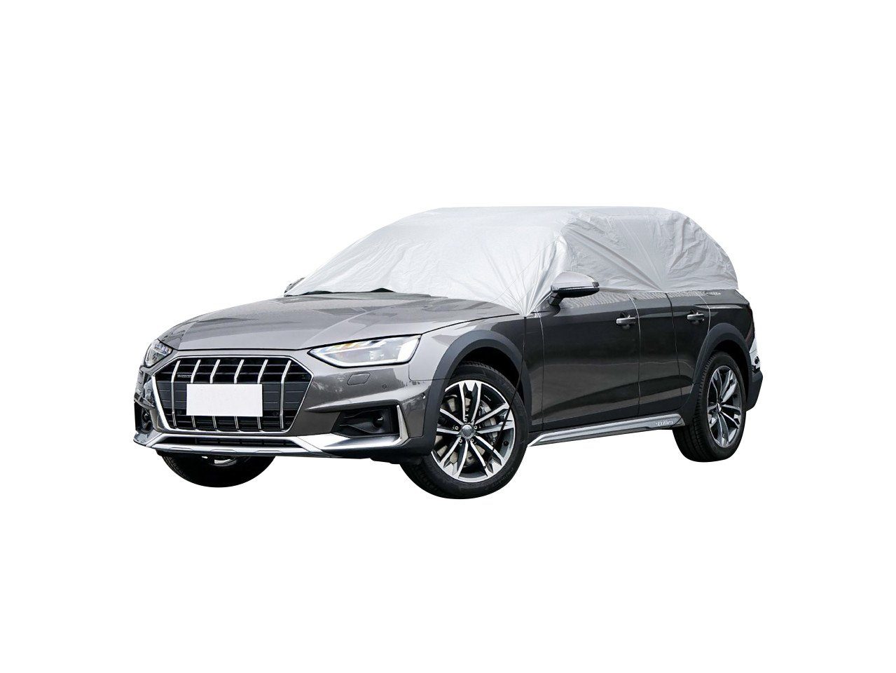 Unsere Autohalbgarage der Размер L bietet ganzjährig Schutz vor Regen, Schnee, Staub und Pollen. Mit einer Длина von 266 cm, einer Breite von 165 cm un einer Höhe von 58 cm passt sie perfekt zu Ihrem Audi A3/A4, Mercedes C-Klasse, Ford Focus, VW Passat usw. Die TrendLine Autohalbgarage schützt nicht nur die äußere Optik deines Fahrzeugs, sondern bewahrt auch das Innere vor extremer Hitze, was insbesondere in den heißen Sommermonaten einen erheblichen Komfortgewinn bedeutet.Die Halbgarage ist aus 100 % Polyestergewebe gefertigt und kann problemlos mit Gummizug und Haken am Fahrzeug befestigt werden.Mit einem zeitlosen und neutralen Design fügt sich die Autohalbgarage nahtlos in jede Umgebung ein.