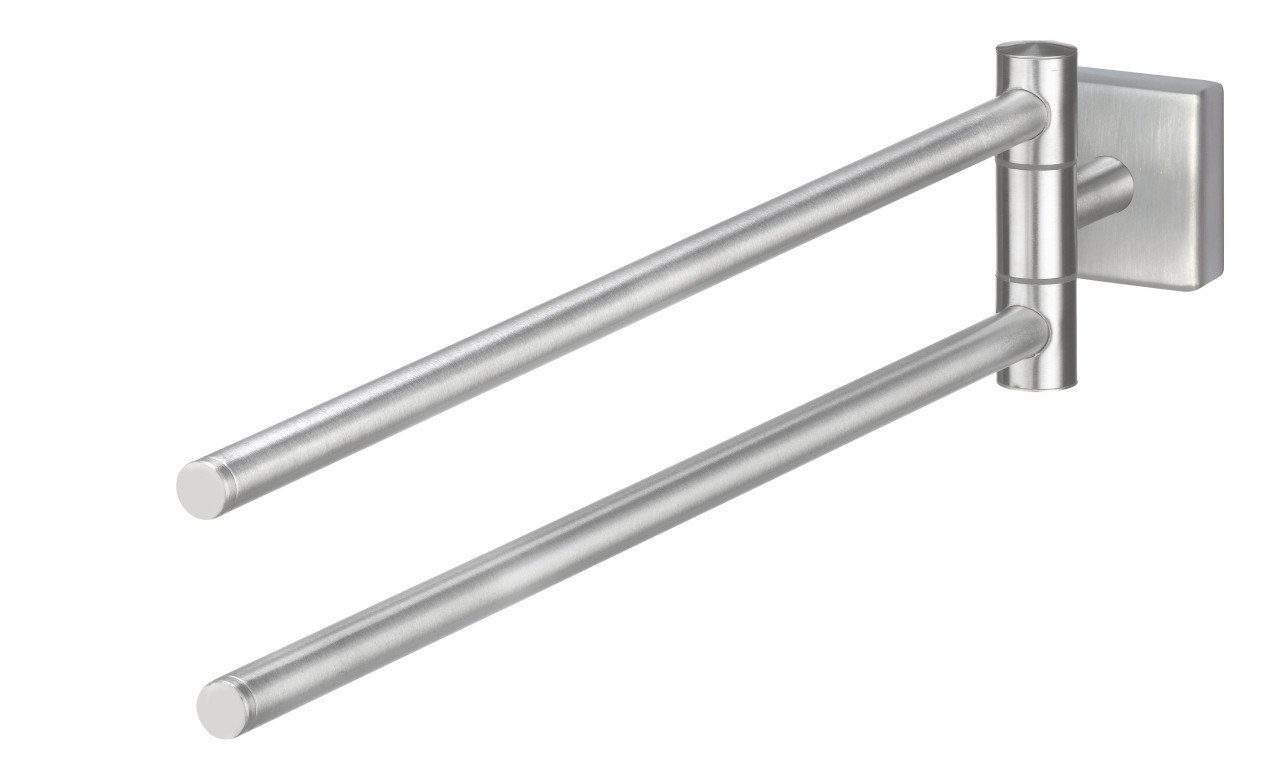 Produktdetails: Material: Edelstahl | Длина: 49,5 cm, Befestigung: 5 x 5 cm | Farbe: gebürstet | 2-armig, schwenkbar | max. Belastbarkeit: 3 kg | Befestigung: Bohren oder Kleben (Material zum Kleben separat erhältlich) | Lieferumfang: Handtuchhalter, Befestigungsmaterial (zum Bohren) |