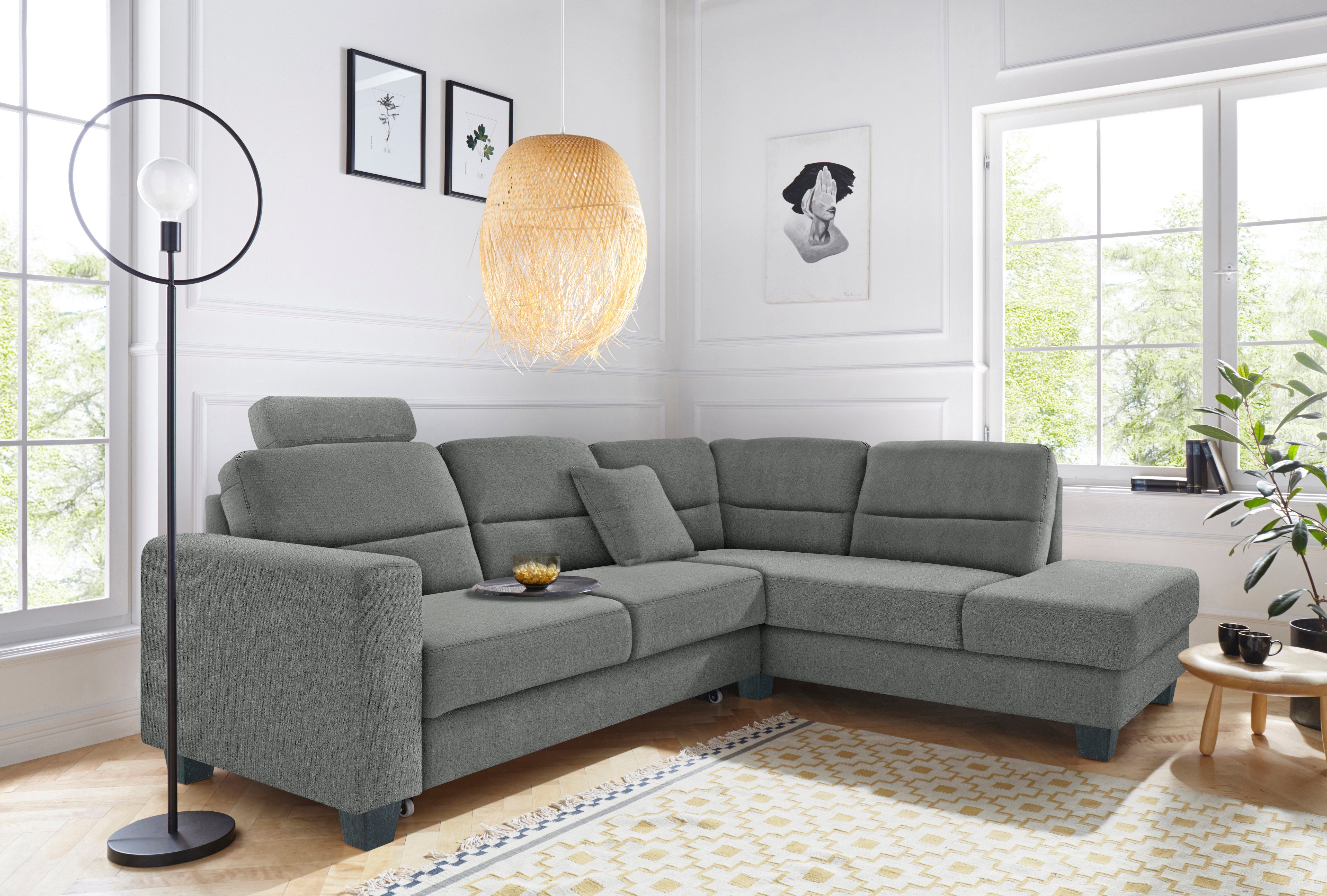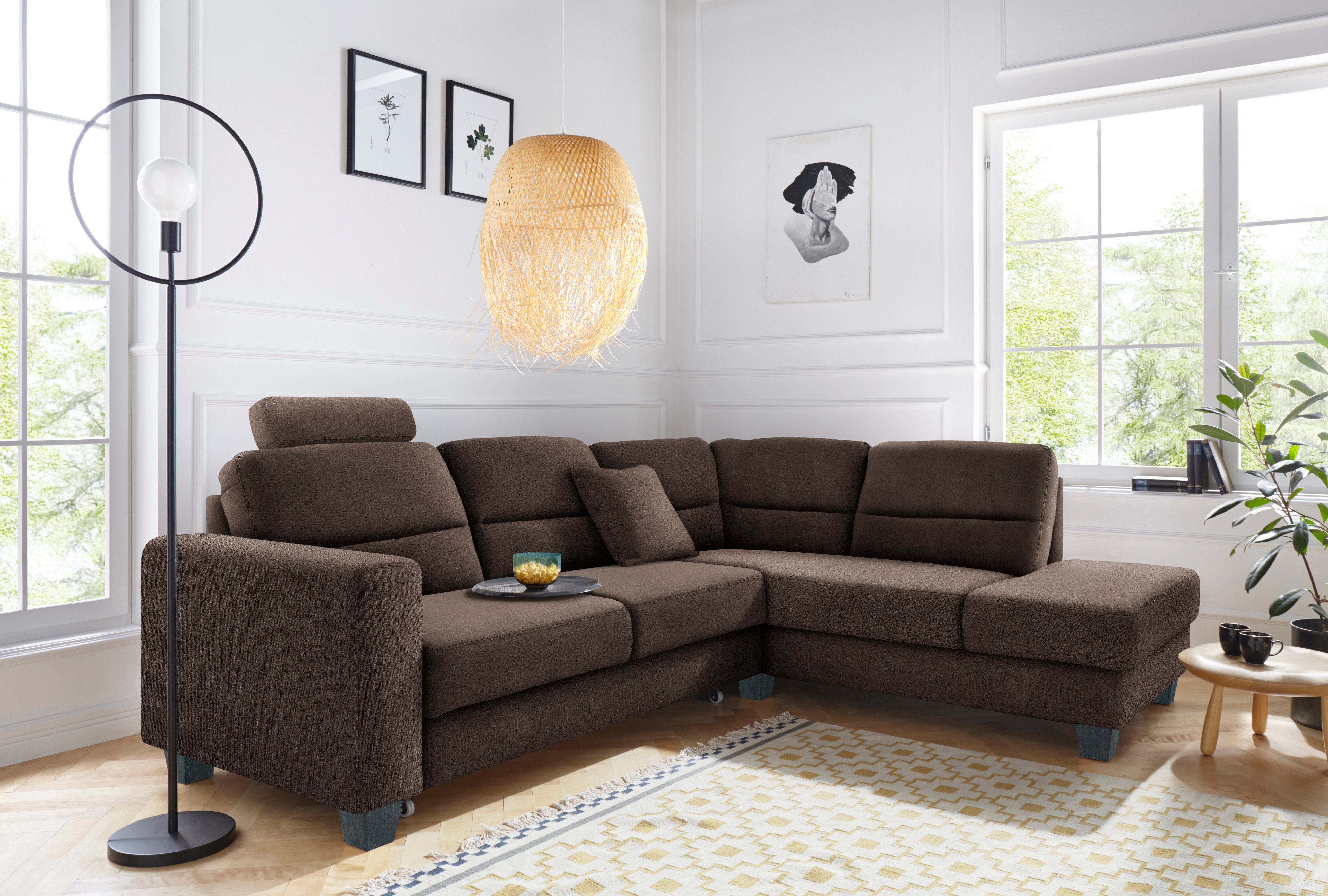 Wissenswertes | Stilvolle Polsterecke in zeitloser Optik, mit heller Kontrastnaht, hoher Sitzkomfort, wahlweise mit Kopfstützen und Bettfunktion, Kopfstützen an jedem Sitzplatz positionierbar, in verschiedenen Stoff und Farbkombinationen zusätzliche Kopfstützen bestellbar |