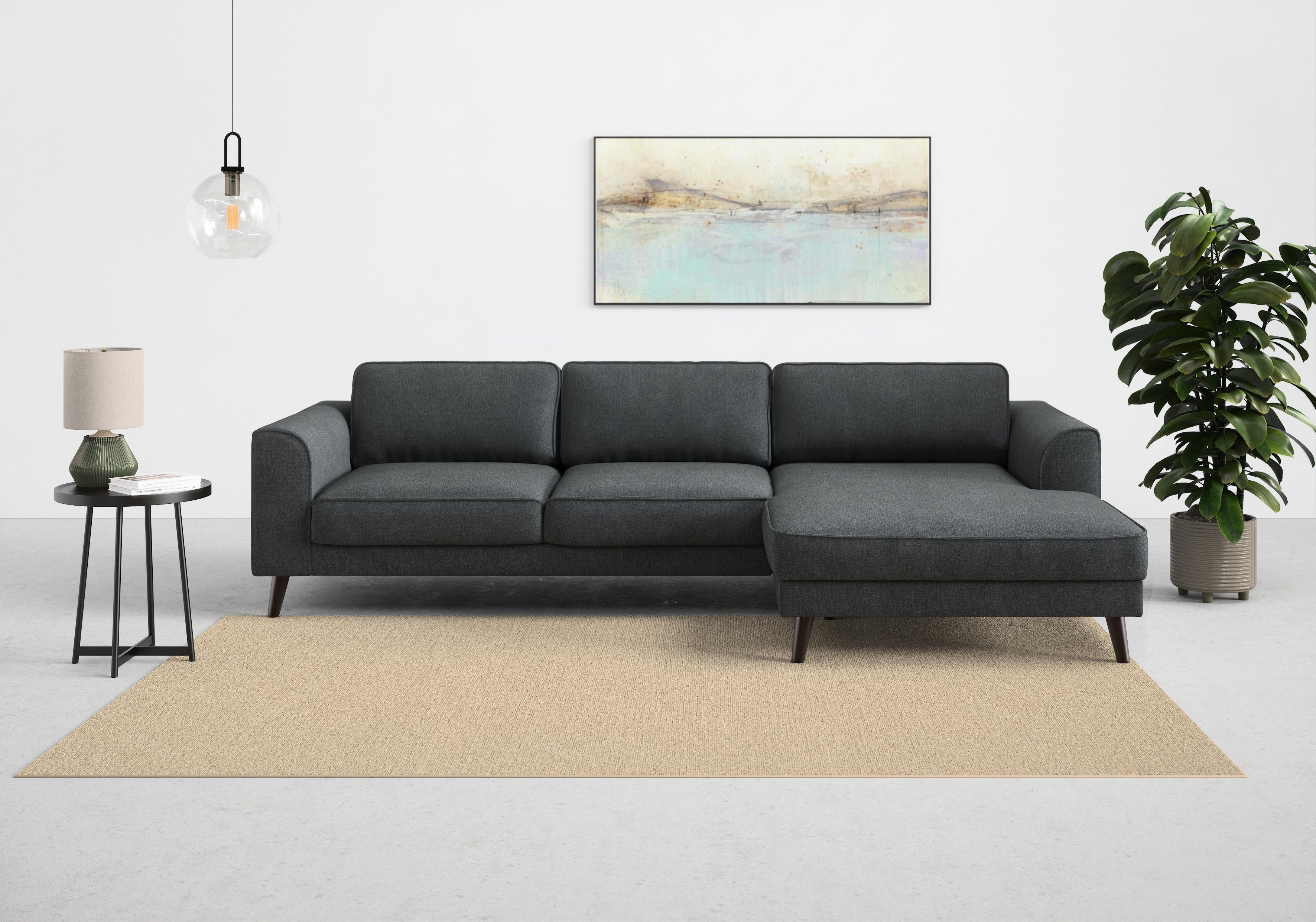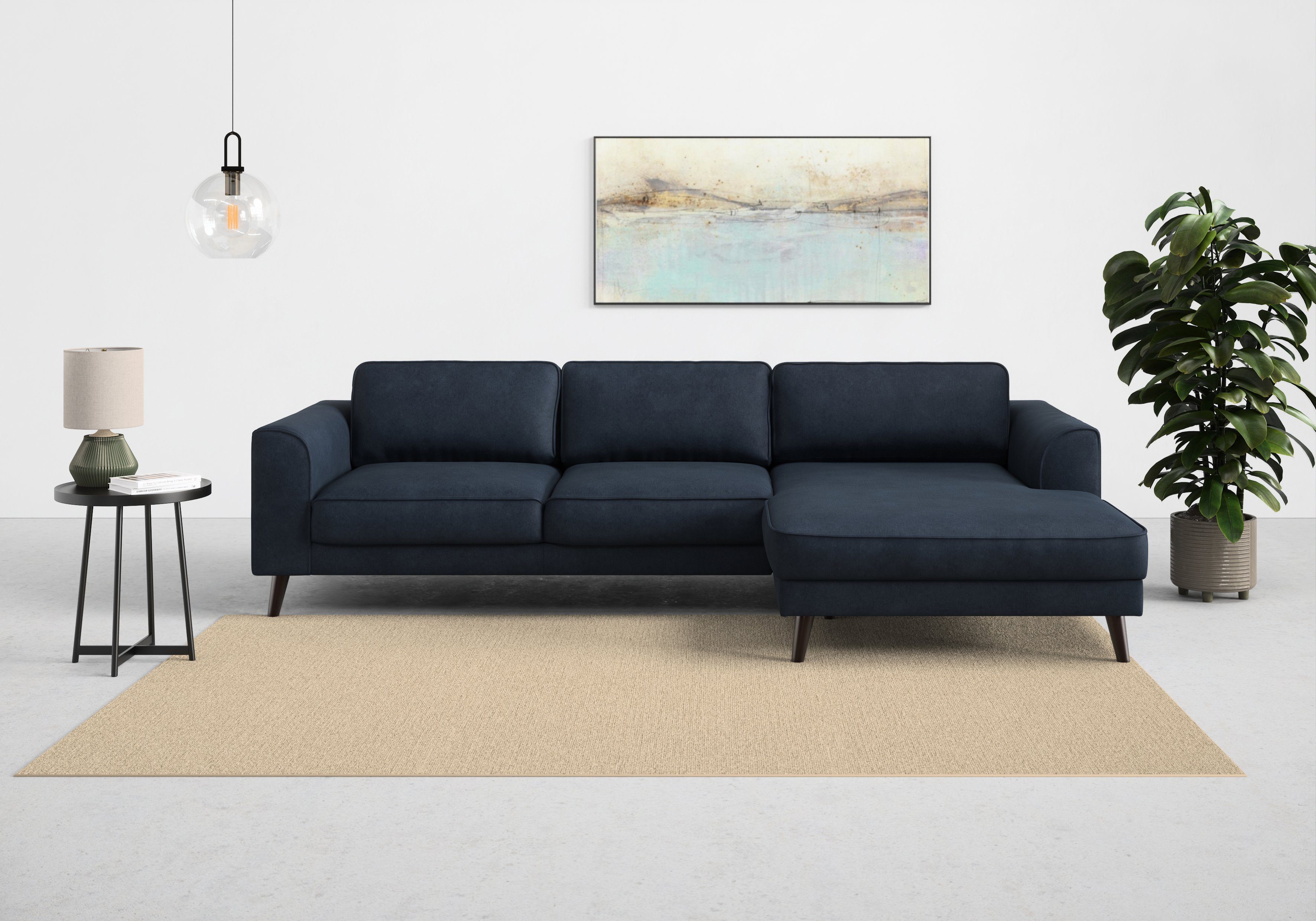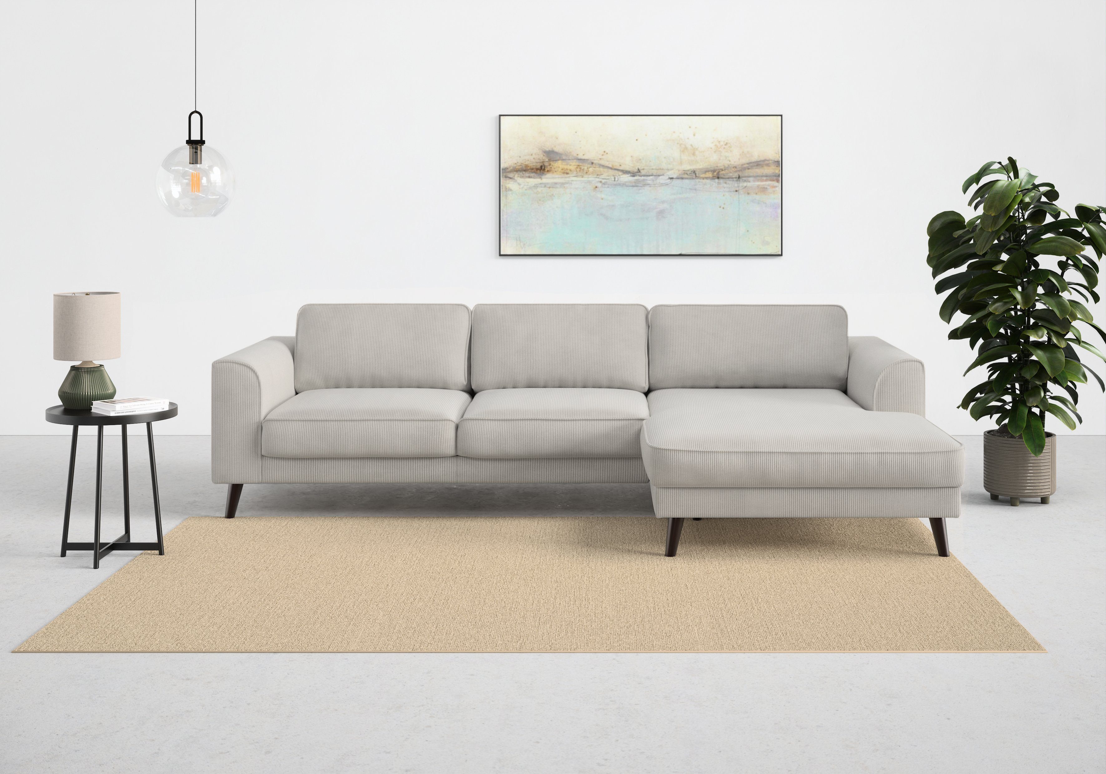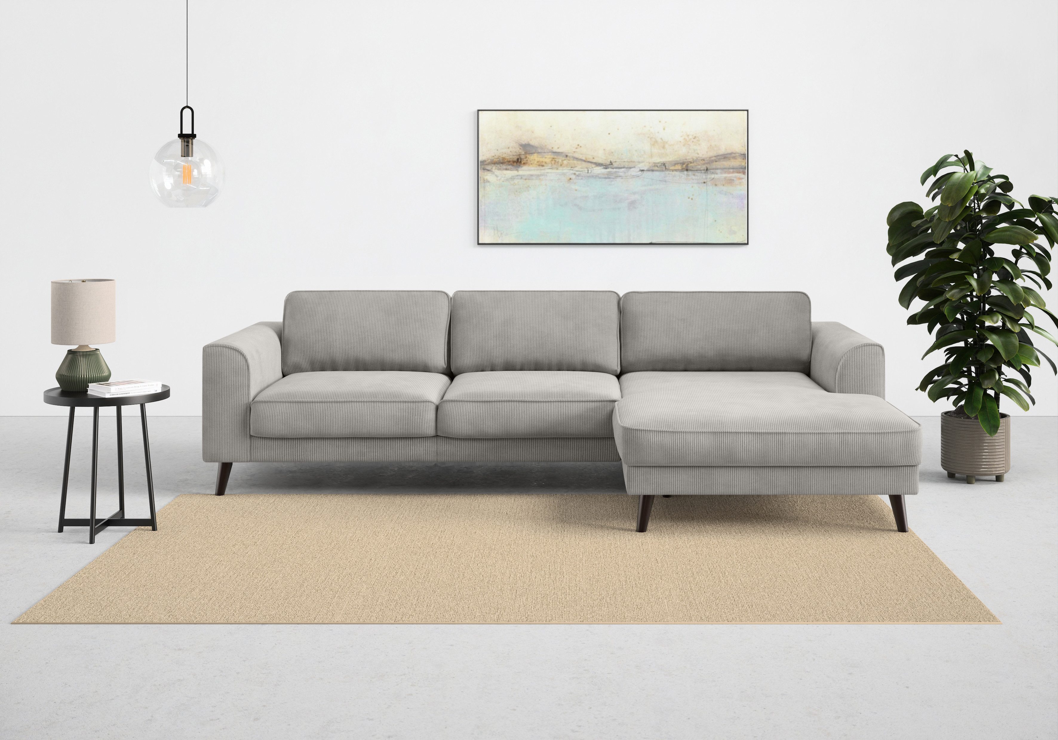 Durch die hochwertige Wellenunterfederung wird die Sitzfläche des Ecksofas »Lumber Jack, elegantes Designsofa, zeitlos modern, hoher Sitzkomfort« von TRENDMANUFAKTUR gut gefedert und bleibt dauerhaft elastisch. Von vorne betrachtet ist die Recamiere nach rechts ausgerichtet. Die maximale Belastbarkeit pro Sitzplatz liegt bei einem Gewicht von 120 Kilogramm. Der hochwertige Strukturstoff ist pflegeleicht und hautsympathisch und überzeugt durch seine Komforteigenschaften. Dieses Modell wurde von Hand gefertigt.
