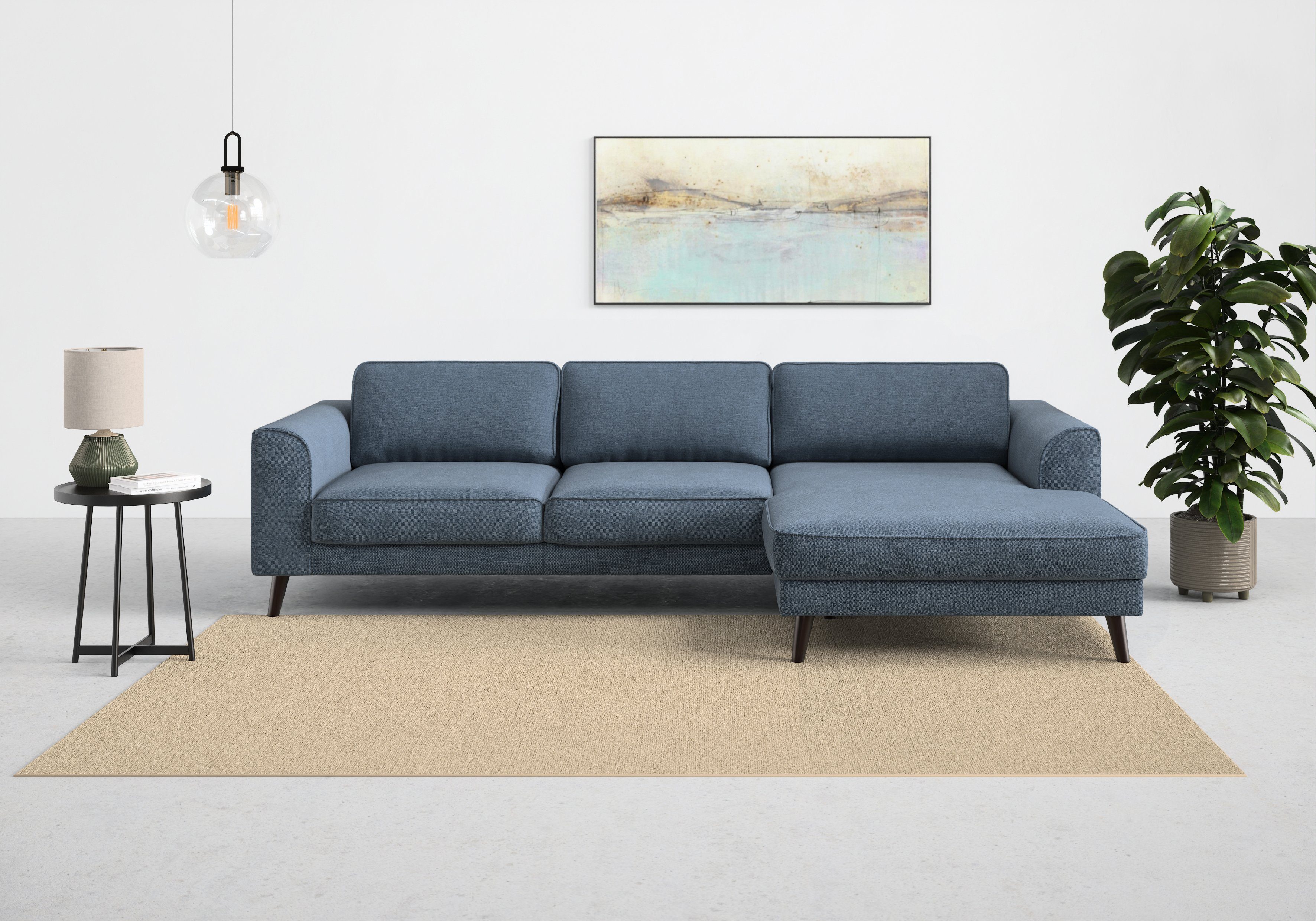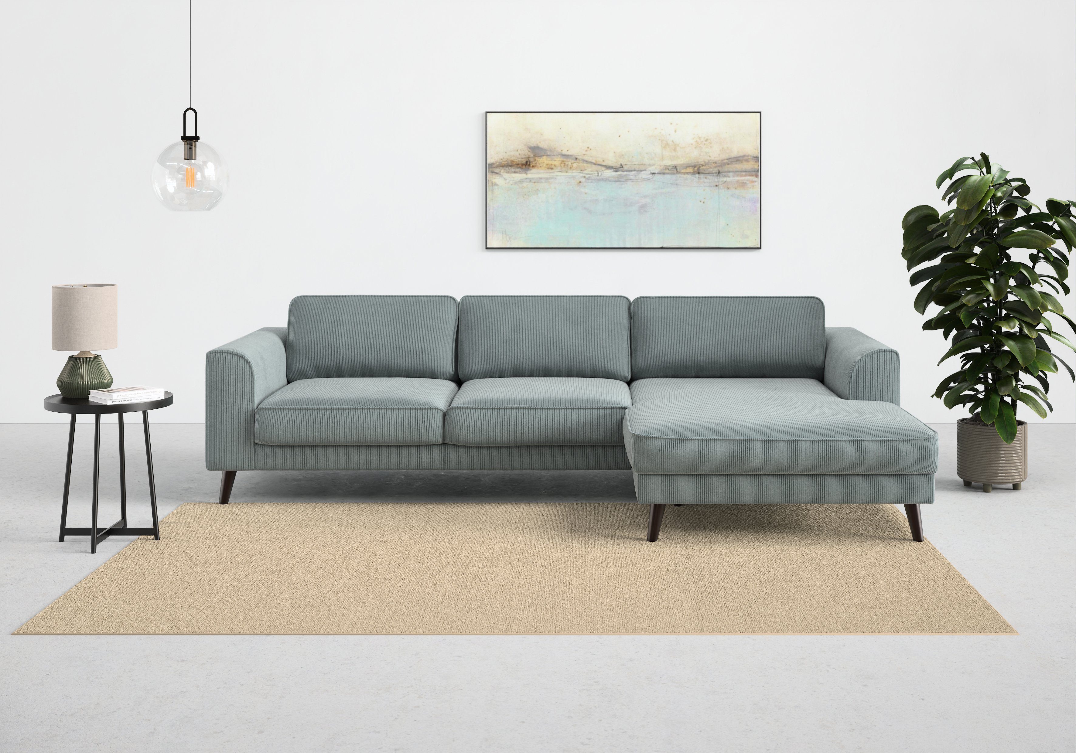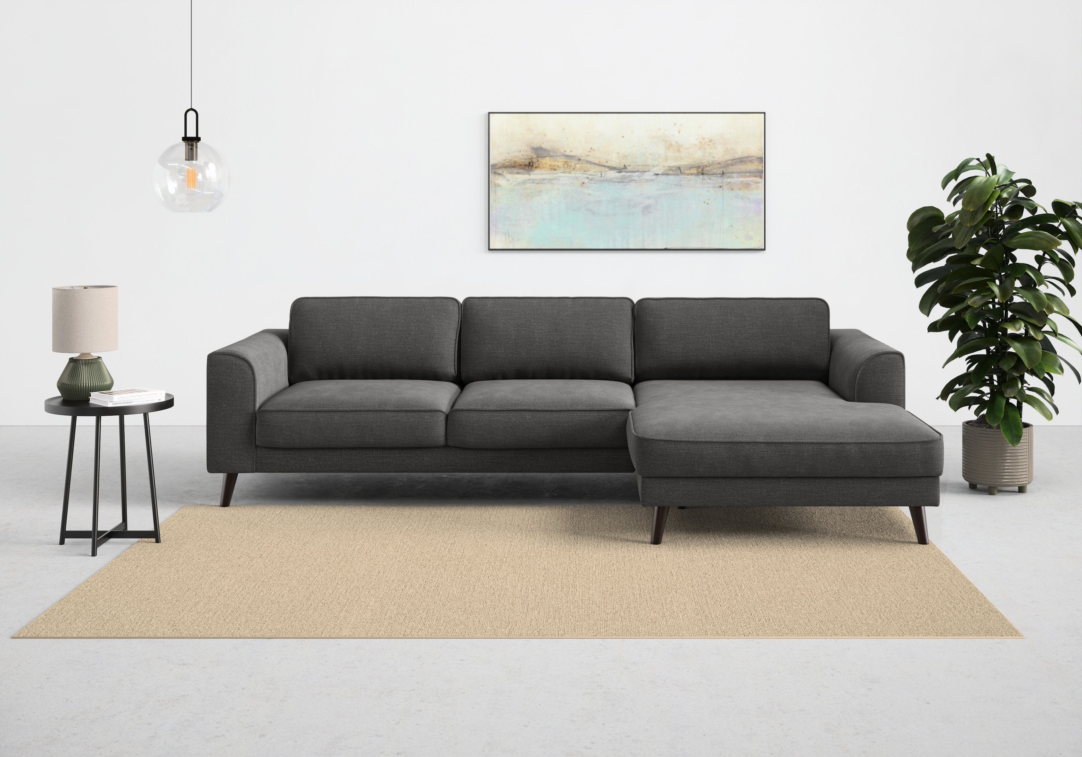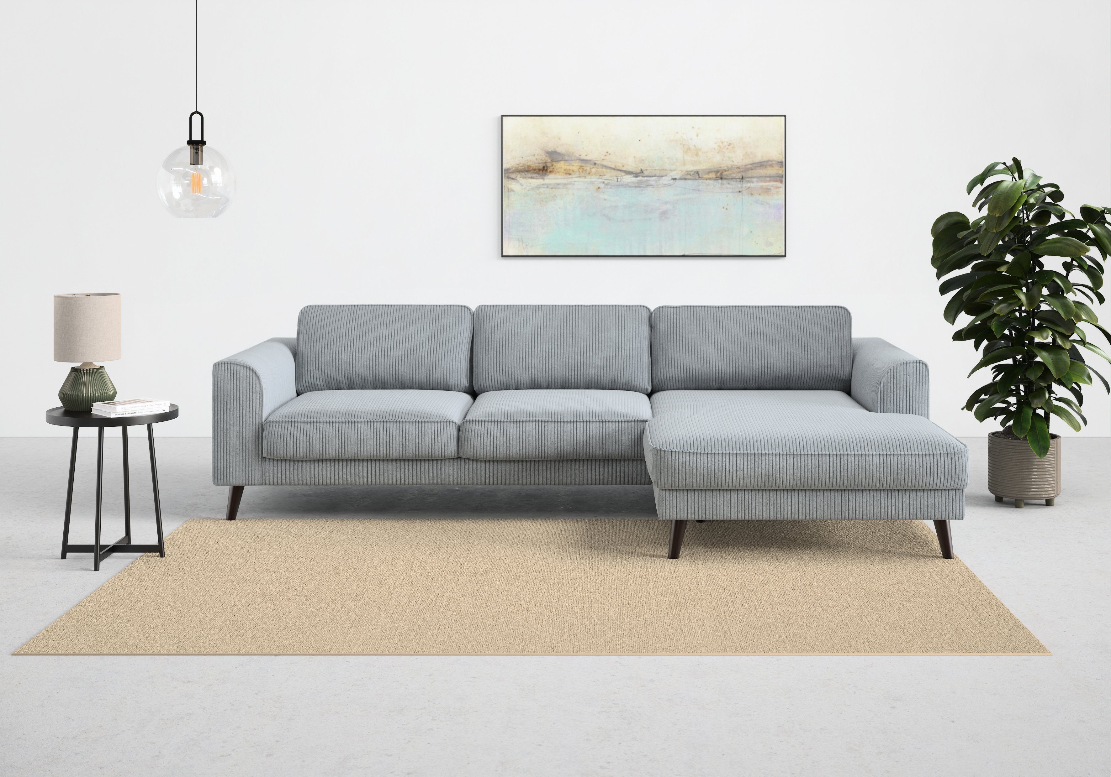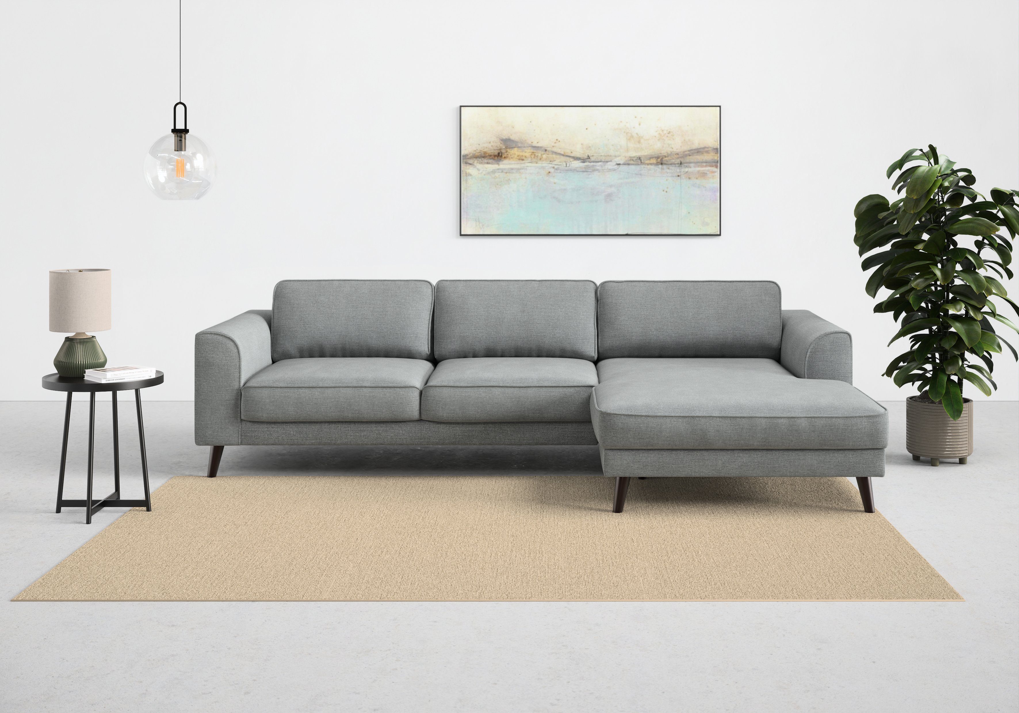 Durch die hochwertige Wellenunterfederung wird die Sitzfläche des Ecksofas »Lumber Jack, elegantes Designsofa, zeitlos modern, hoher Sitzkomfort« von TRENDMANUFAKTUR gut gefedert und bleibt dauerhaft elastisch. Von vorne betrachtet ist die Recamiere nach rechts ausgerichtet. Die maximale Belastbarkeit pro Sitzplatz liegt bei einem Gewicht von 120 Kilogramm. Der hochwertige Strukturstoff ist pflegeleicht und hautsympathisch und überzeugt durch seine Komforteigenschaften. Dieses Modell wurde von Hand gefertigt.