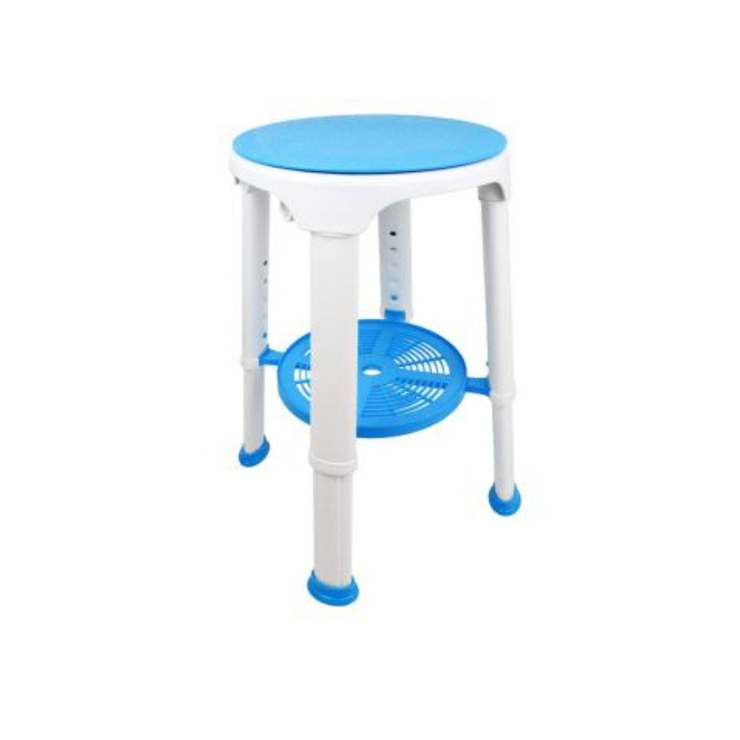 Trendmobil - Duschhocker Sono mit Drehscheibe bis 180kg Duschhocker Sono mit Drehscheibe bis 180kg und Ablagefach, Aluminiumrahmen, höhenverstellbar Der Duschhocker Sono von Trendmobil ist eine ideale Hilfe bei der täglichen Körperpflege. Der Sono Duschhocker ist mit einer 360° drehbaren Sitzfläche versehen, die ein Drehen in der Dusche und ein Umsetzen wesentlich erleichtert. Der Duschhocker ist fünffach höhenverstellbar und besitzt zusätzlich eine abnehmbare Ablage unter der Sitzfläche. Dort lassen sich die Badutensielien aufbewahren. Seine großen, ovalen rutschfesten Gummifüße sorgen dafür, dass der Duschhocker Sono im Nassbereich und auf glatten Böden sicher steht. Ob für die Dusche oder nur als Sitzhilfe vor dem Waschtisch - dieser Hocker ist eine praktische Hilfe. Mit seiner großen Sitzfläche und einer maximalen Belastbarkeit von 180kg gehört er zu den XL-Hilfsmitteln und ist er für schwere Personen geeignet. Merkmale/Komponenten Fünffach höhenverstellbar. Rutschsichere, ovale Füße. Rostfrei. Inklusive Drehplatte. Ablagefach unter der Sitzfläche<./li> werkzeugfreie Montage. 360°-Rotationsfunktion. Einfach zu reinigen. Farbe: Weiß/Türkis. Technische Daten Gesamttiefe: 37 cm Gesamtbreite: 37 cm Sitzfläche d=36 cm Sitzhöhe: 42-54 cm Gewicht: 2,85 kg Maximale Belastbarkeit: 180 kg
