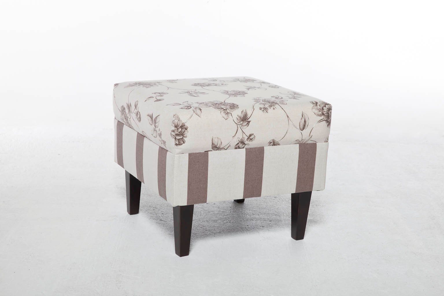 Toller Hocker passend zum Sessel Aversa mit schöner Landhausstoff Kombination in Beige und Dunkelbraun.