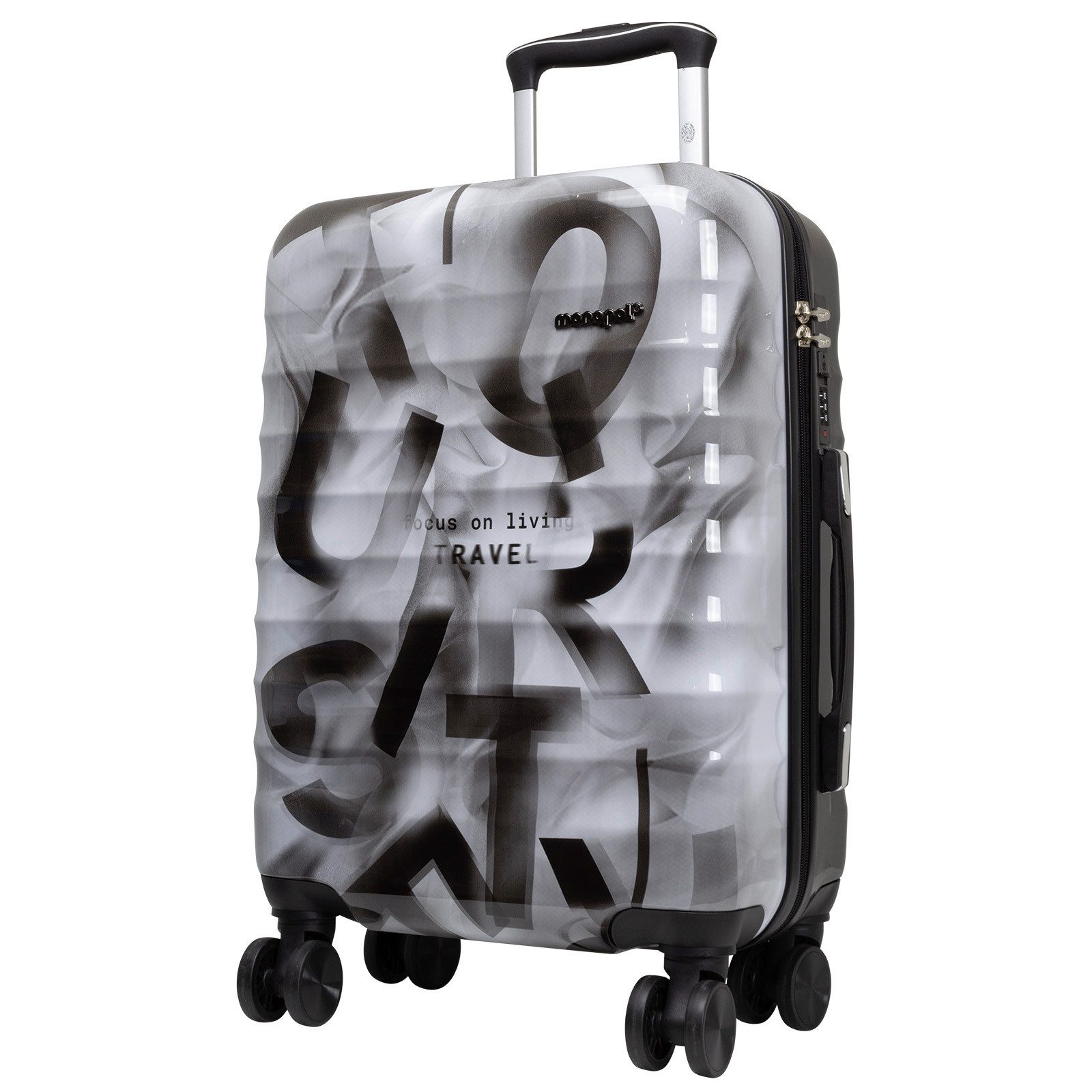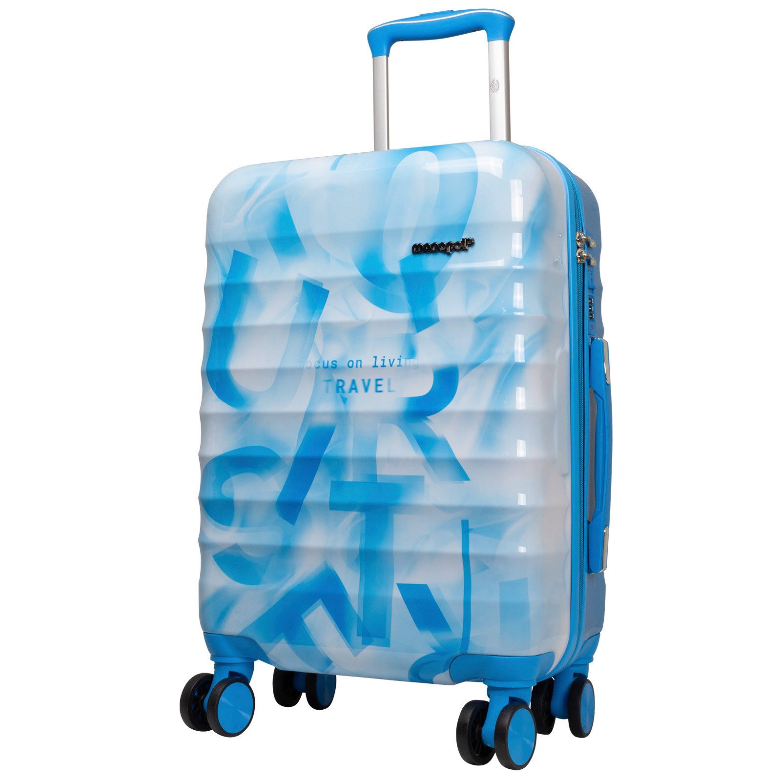 Außenausstattung | Hartschale aus Polycarbonat 4 Doppelrollen / Zwilingsrollen Zahlenschloss ausziehbarer Teleskopgriff zusätzliche Tragegriff seitlich und oben Dehnfalte / Extra Reißverschluss für mehr Volumen (Koffer M+L) |