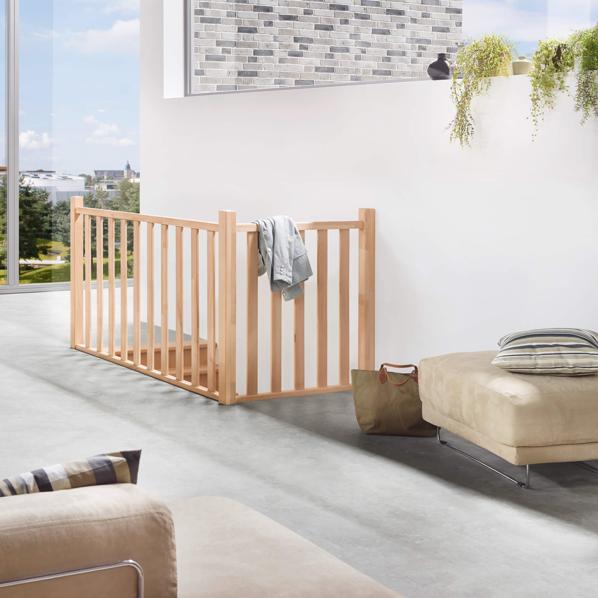 Die Deckenöffnung einer Treppe sollte stets mit einem Brüstungsgeländer abgesichert werden. Auch für die beliebte Holztreppe Intercon Casablanca bieten wir Ihnen ein passendes Brüstungsgeländer. Das optionale Brüstungsgeländer sichert daher nicht nur Ihre Deckenöffnung, es bildet mit der Holztreppe ein harmonisches Gesamtbild. Mit seinem warmen Holzton, wahlweise in Fichte oder Buche, unterstützt das Geländer die natürliche Wirkung Ihrer Holztreppe Intercon Casablanca.