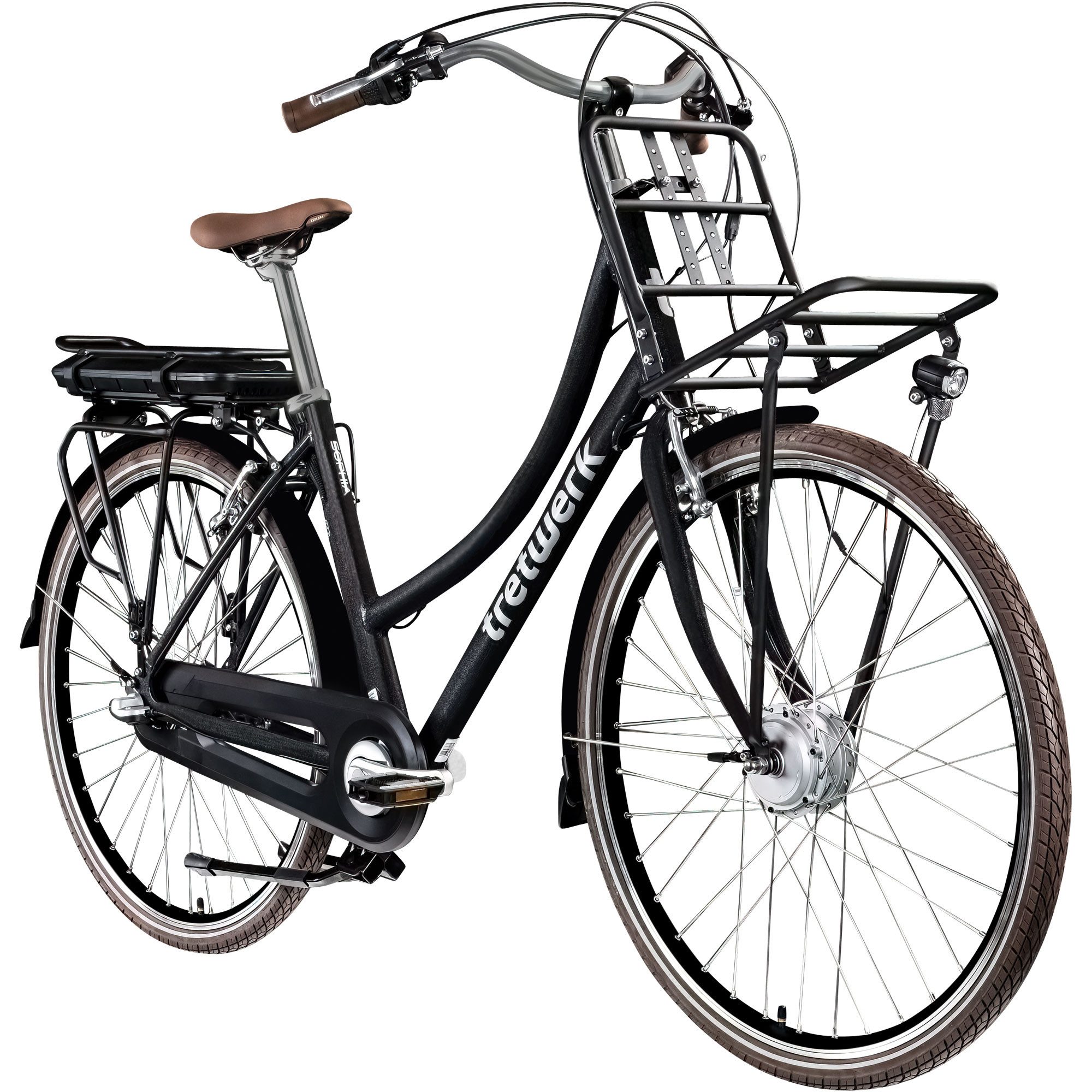 Das Tretwerk Sophia ist ein City E Bike mit tiefem Einstieg, das sich für tägliche Strecken in der Stadt eignet. Der Tiefeinsteigerrahmen und die aufrechte Sitzposition erleichtern das Fahren im Alltag. Ein ergonomisch geformter Lenkergriff und der Komfortsattel erhöhen den Sitzkomfort.