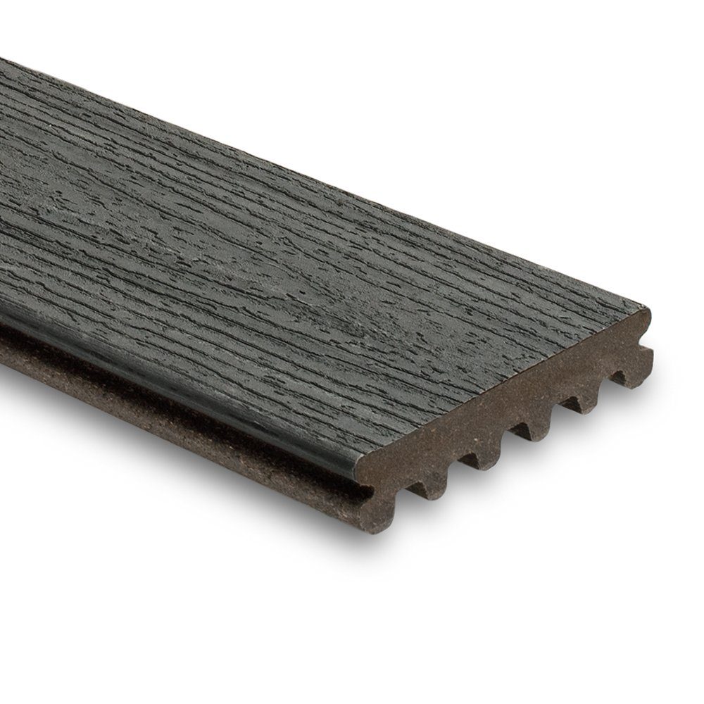 Die Verarbeitung der Trex-Dielen ist ähnlich wie die von Holzdielen. Sie lassen sich ebenso leicht schneiden, sägen und bohren. Darüber hinaus splittern und verziehen sie sich nicht beim Lagern auf der Baustelle. Von Trex Transcend unterscheidet sich die Trex Enhance Terrassenverkleidung vor allem durch das auf der Unterseite gezahnten Profil. Dadurch werden Enhance-Dielen leichter, was ihre Handhabung und ihren Transport vereinfacht.