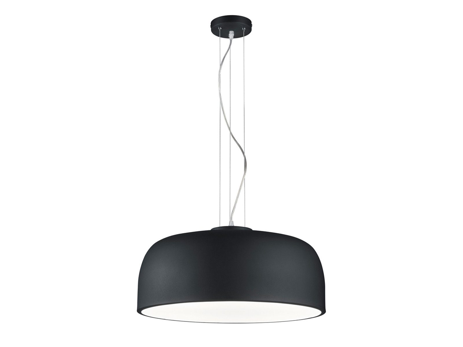 Der Lampenschirm aus schwarzem Metall verleiht der Hängeleuchte ihren ganz eigenen Charakter. Mit einem Schirmdurchmesser von 52 cm sowie einer Abhängung von 150 cm kommt das attraktive Design der Pendelleuchte mit dem matt schwarzem Korpus perfekt zur Geltung.