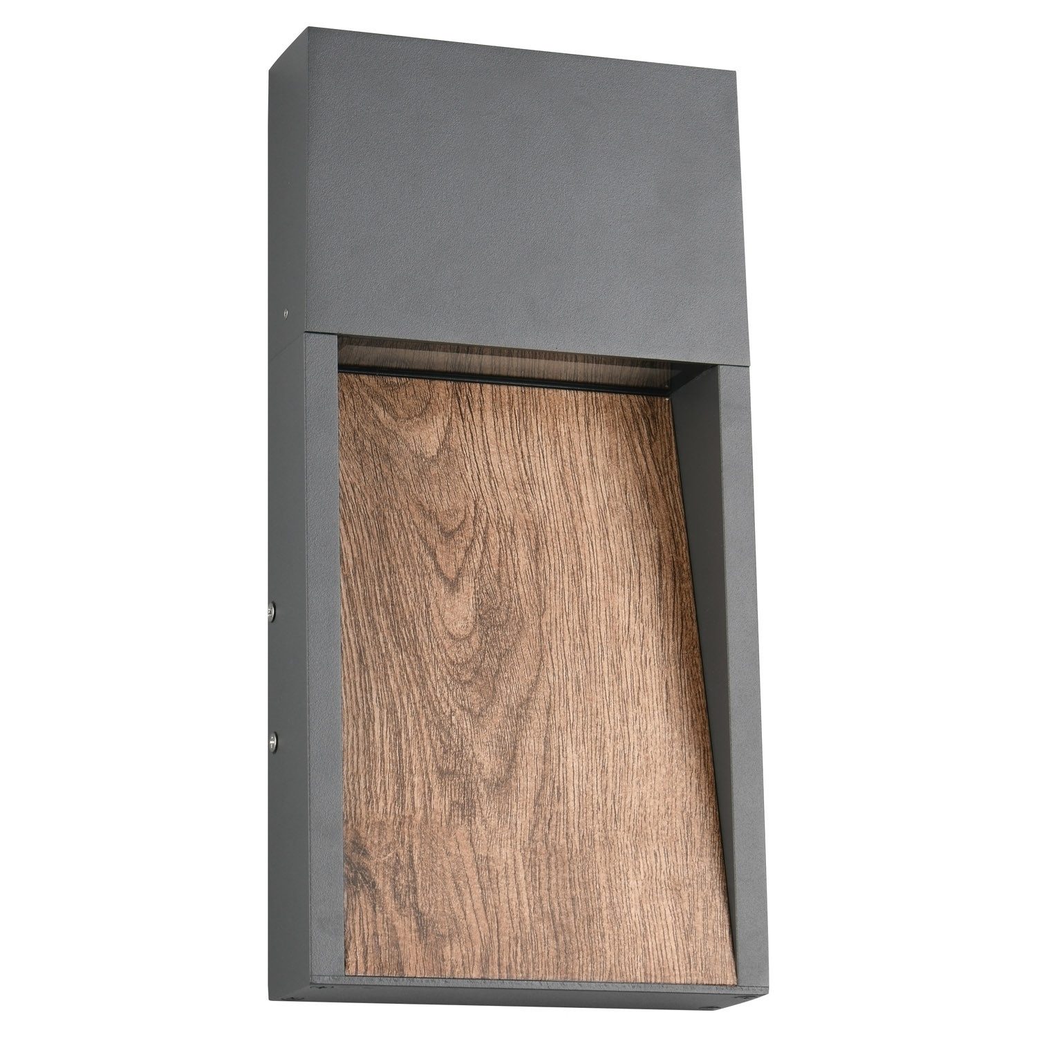 TRIO Leuchten LED Wandleuchte SALMON, Anthrazit, Holzoptik, Aluminium, 1-flammig, LED fest integriert, Extra-Warmweiß, IP44 Spritzwassergeschützt, B 16,5 x H 33 x T 4,5 cm