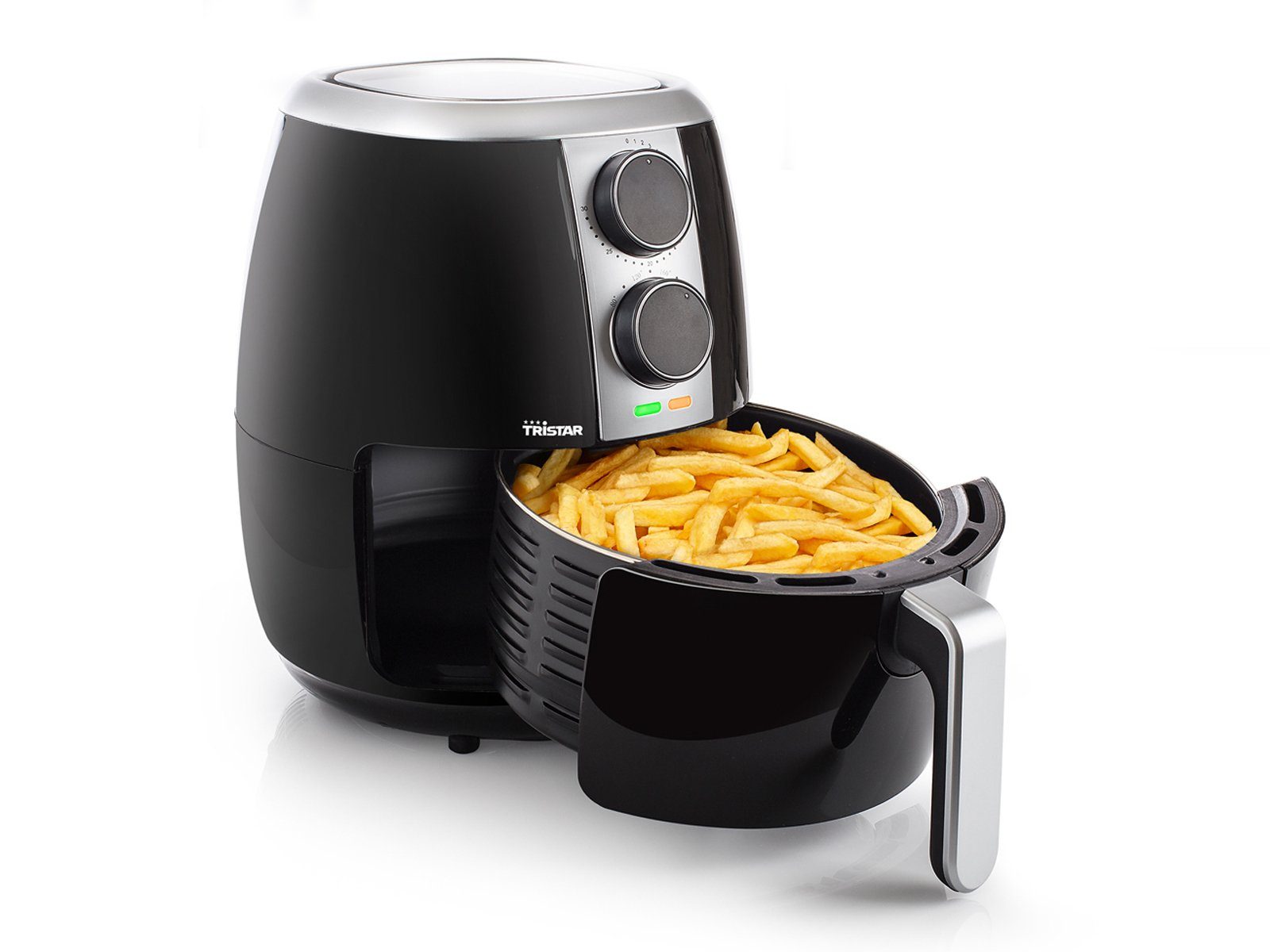 Top-Features | Die kleine Crispy-Fritteuse ist die Lösung, wenn Sie eine kompakte Heißluftfritteuse suchen. Die Heißluftfritteuse nutzt Heißluftkonvektion, so dass Sie Backen, Frittieren, Braten und Grillen können, ohne Fett zu verwenden Mit 3,5 l Fassungsvermögen nimmt sie nicht viel Platz ein. Das reicht aus, um fünf Portionen Pommes Frites gleichzeitig zuzubereiten. Mit dem Drehregler für Garzeit und Temperatur finden Sie immer die richtige Einstellung für Ihr Gericht. Die Temperatur kann zwischen 80 und 200 °C und der Timer mit Alarmton auf bis zu 30 Minuten eingestellt werden. Ohne Öl oder mit nur ganz wenig Öl erhalten Sie dank der hohen Konvektionsgeschwindigkeit der Luft ein äußerst knuspriges Ergebnis. |