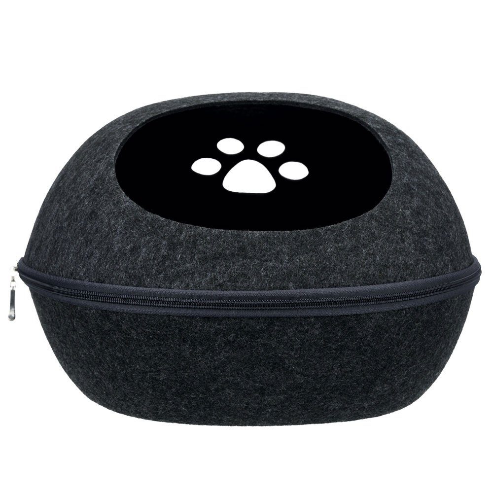 Die Kuschelhöhle Liva besteht aus formstabilem Filz (Polyester), welches isolierend und schmutzabweisend wirkt.