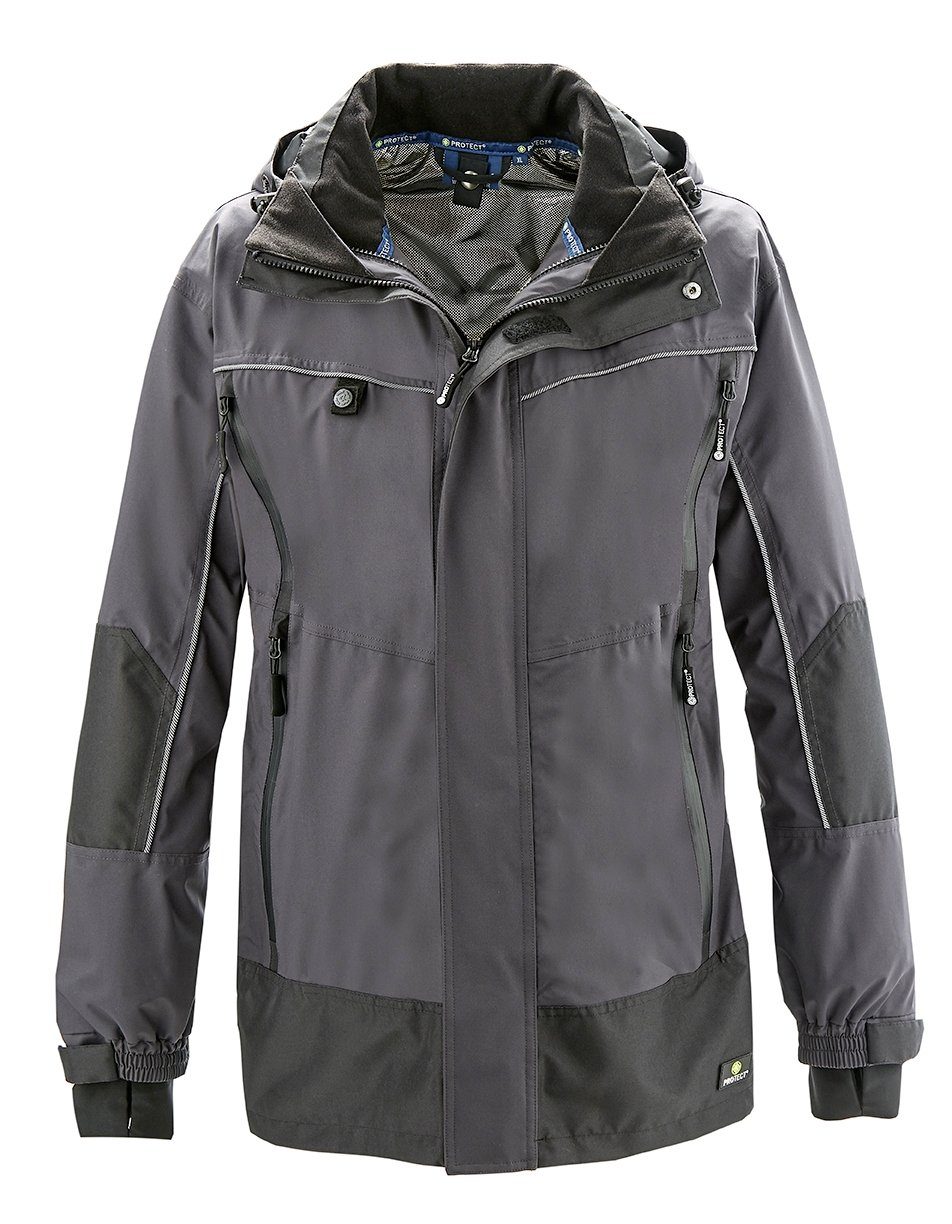 In Übereinstimmung mit EN 343:2019. Wind- und wasserdichte Ausstattung bei hoher Atmungsaktivität, die eine lange Tragedauer gestattet. Weitenverstellung in Taille und Saum, doppelt abgedeckter Front-Reißverschluss, abzippbare Sturmkapuze mit diversen Verstell Optionen. 2 Brusttaschen und 2 untere Taschen mit wasserdichten Reißverschlüssen und Zipper-Garage sowie 1 Napoleon-Tasche mit integriertem, abnehmbarem Schlüsselband. Im Futter 1 Brust- und 1 große Tasche für Kapuze, sowie Service-Reißverschluss zum einfachen Bedrucken und Besticken. Unterarmbelüftung, justierbare Klett-Manschetten, innenliegende Elastic-Manschette, abriebfeste Besätze an Ellenbogen und im Saumbereich, Reflexpaspel auf Vorder- und Rückenteil, Vorrichtung zur Befestigung einer ID-Card. Vorbereitet zum Einzippen von: DALLAS: 3360=schwarz MAINE: 3355=schwarz-weiß-melange IDAHO: 3322=schwarz MONTANA: 3388=schwarz, 3390=grau/schwarz, 3391=navy/schwarz