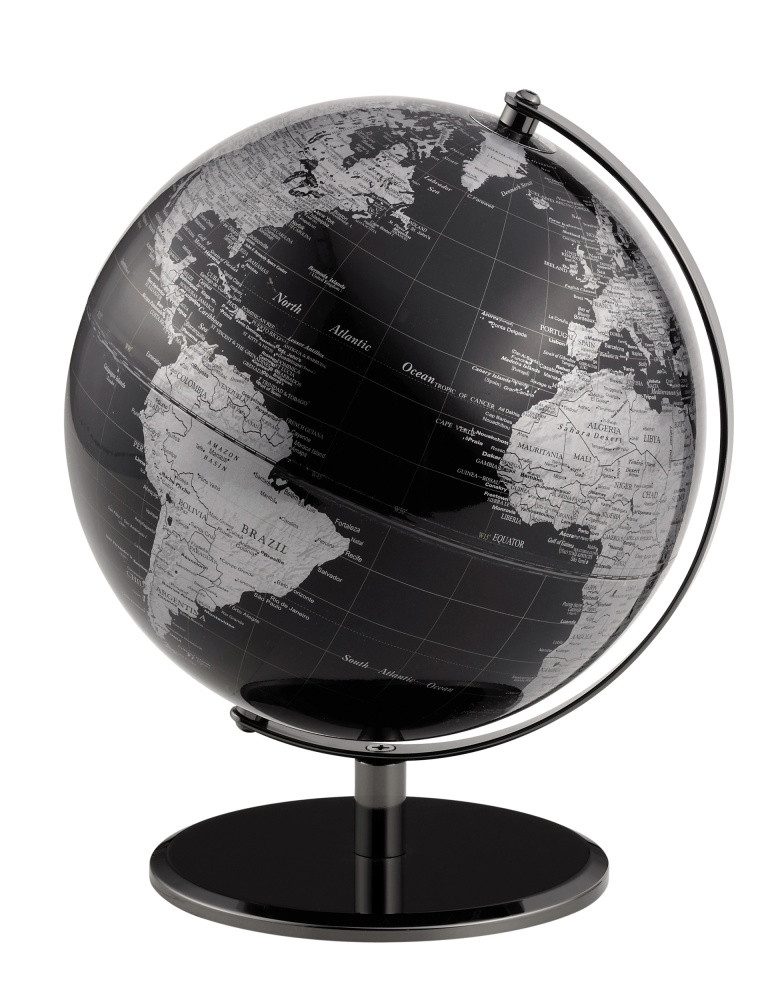 Überall zuhause. Der klassisch-elegante Tischglobus PLANET lässt sich mit seiner attraktiven Размер von 250 x 300 Millimetern an unterschiedlichsten Standorten platzieren: auf dem Schreibtisch, auf einem Sideboard oder im Regal ebenso wie in der Ku?che. Wahlweise gibt es den englisch beschrifteten Globus mit verchromtem Metallfuß und mit glänzender Weltkugel oder alternativ mit schwarz mattem Metallfuß und mit matter Weltkugel. Die Unterseite des Fußes ist zum Schutz von Möbeloberflächen mit Filz versehen.