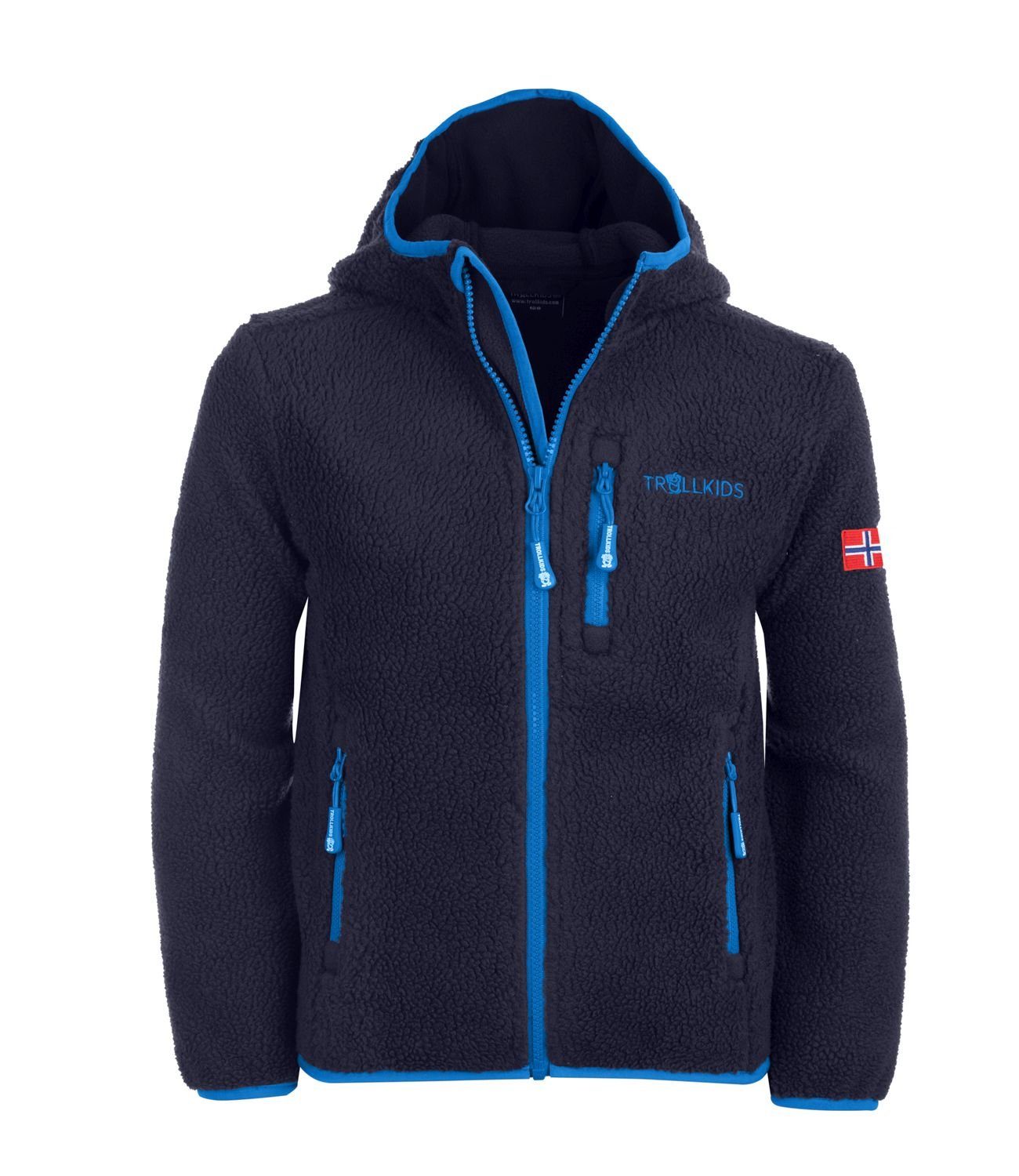 Mit dem KIDS MANDAL JACKET bringt Trollkids erstmals eine Jacke aus Teddyfleece auf den Markt – aber nicht irgendeine, sondern eine richtig hochwertige: Das recycelte "Sherpa-Fleece" hat die besonders wärmende 350 g/m² Qualität und ist auch auf der Innenseite der Jacke hochflorig und damit sehr kuschelig zu tragen. Die Jacke hat eine feste Kapuze sowie zwei praktische Hüft- und eine Brusttasche – alle drei mit Reißverschluss. Schönes Detail sind die farblich abgesetzten, elastischen Saumeinfassungen. Material: 100% recyceltes Polyester; Fleecestärke: 350 g/m²