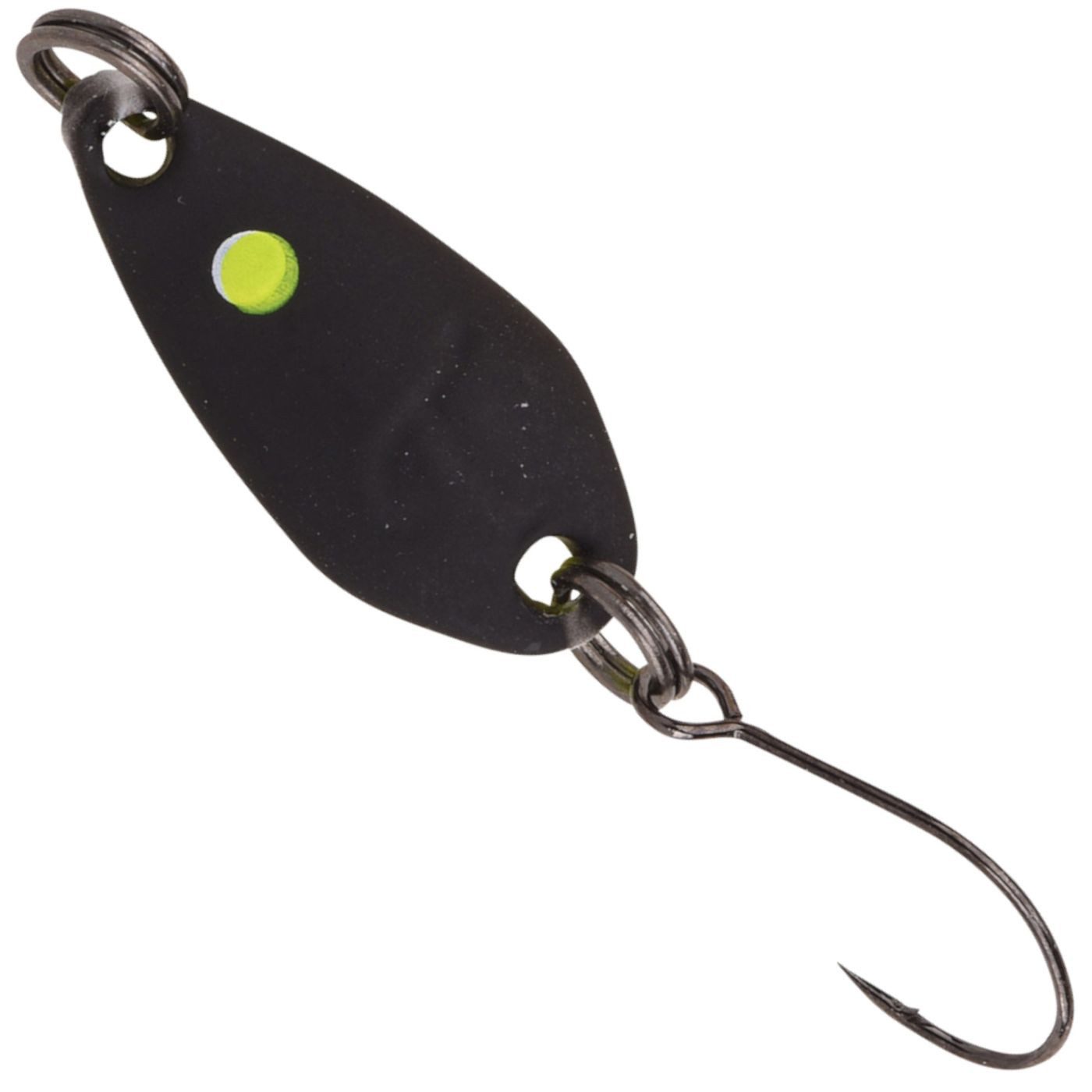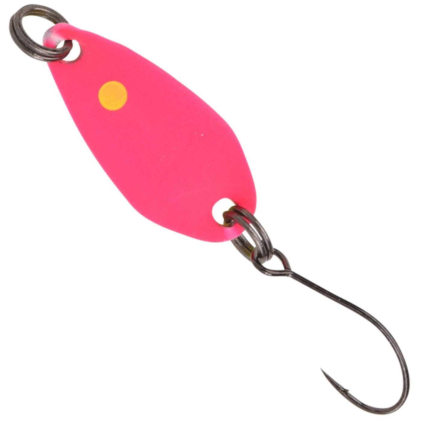 Trout Master Incy Spoon - Blinker - Die Forellenblinker von Trout Master weisen eine Длина von 2cm auf und bringen gerade einmal 1,5g auf die Waage. Trotz der geringen Größe besitzt der Forellenspoon einen sehr lebhaften sowie verführerischen Köderlauf und durch die kompakte Bauweise lassen sich zudem mit leichtem Forellengerät große Wurfweiten erzielen. Das leichte Ködergewicht ermöglicht eine langsame Köderpräsentation, so dass verschiedene Gewässerbereiche ausgiebig abgefischt werden können. Ausgestattet ist der Forellenköder mit einem sehr scharfen Einzelhaken, der wiederum an einem starken Sprengring montiert ist. Die Kunstköder lassen sich sehr gut zum Spinnangeln an Forellenteichen und Forellenseen einsetzen, aber auch beim Spinnfischen auf Bachforellen in Bächen stellen die Forellenblinker einen tollen Köder dar.