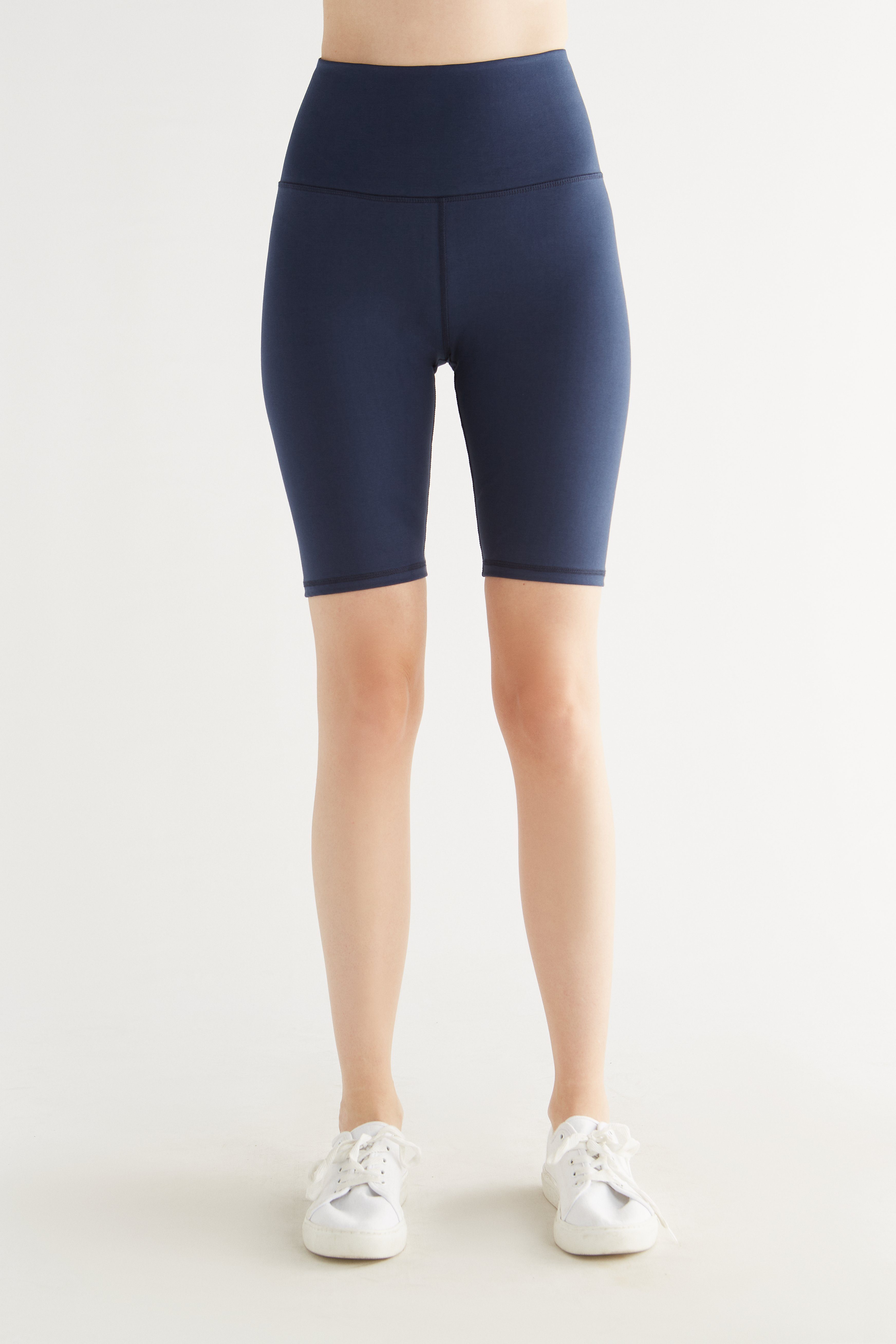 Freundlich zu dir - freundlich zu der Umwelt. Hochwertige Radlerhose in der Farbe "Navy" aus 72% Bio-Baumwolle (kbA) und 28% recyceltem Elasthan. Die Hose ist enganliegend geschnitten mit einem breiten, hohen Bund. Der weiche, dehnbare Stoff ist fester aber hoch flexibel und dadurch sehr angenehm zu tragen.