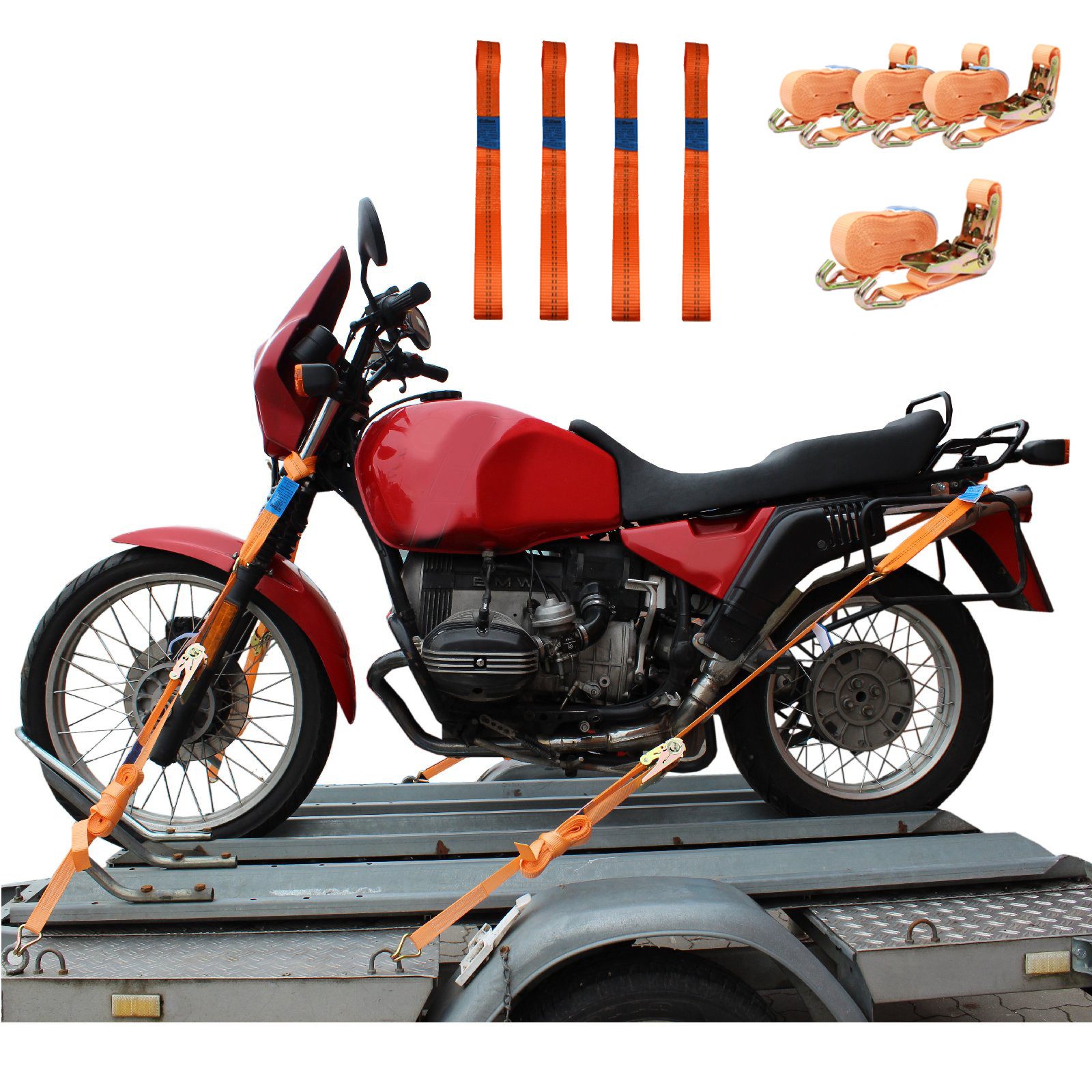 Dieses Set, bestehend aus 4 Gurtschlaufen und 4 Spanngurten, ermöglicht Ihnen eine sichere und schnelle Verzurrung von Transportgütern wie z.B. Motorrädern, Motorrollern und vielem mehr.