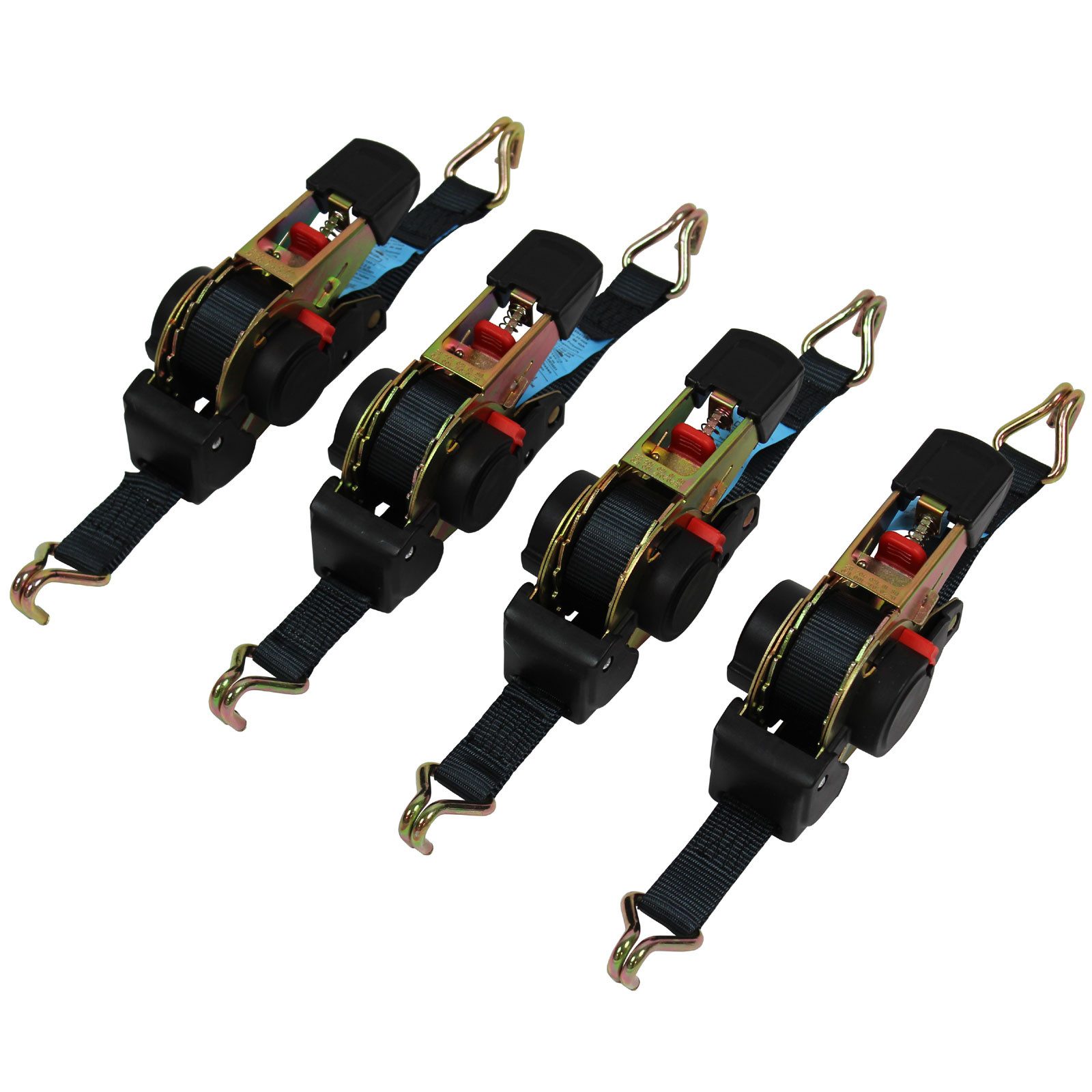 4 er Set Automatik Spanngurt Zurrgurt mit Aufrollfunktion 320/640 daN / 25mm- 3 Meter / Spitzhaken