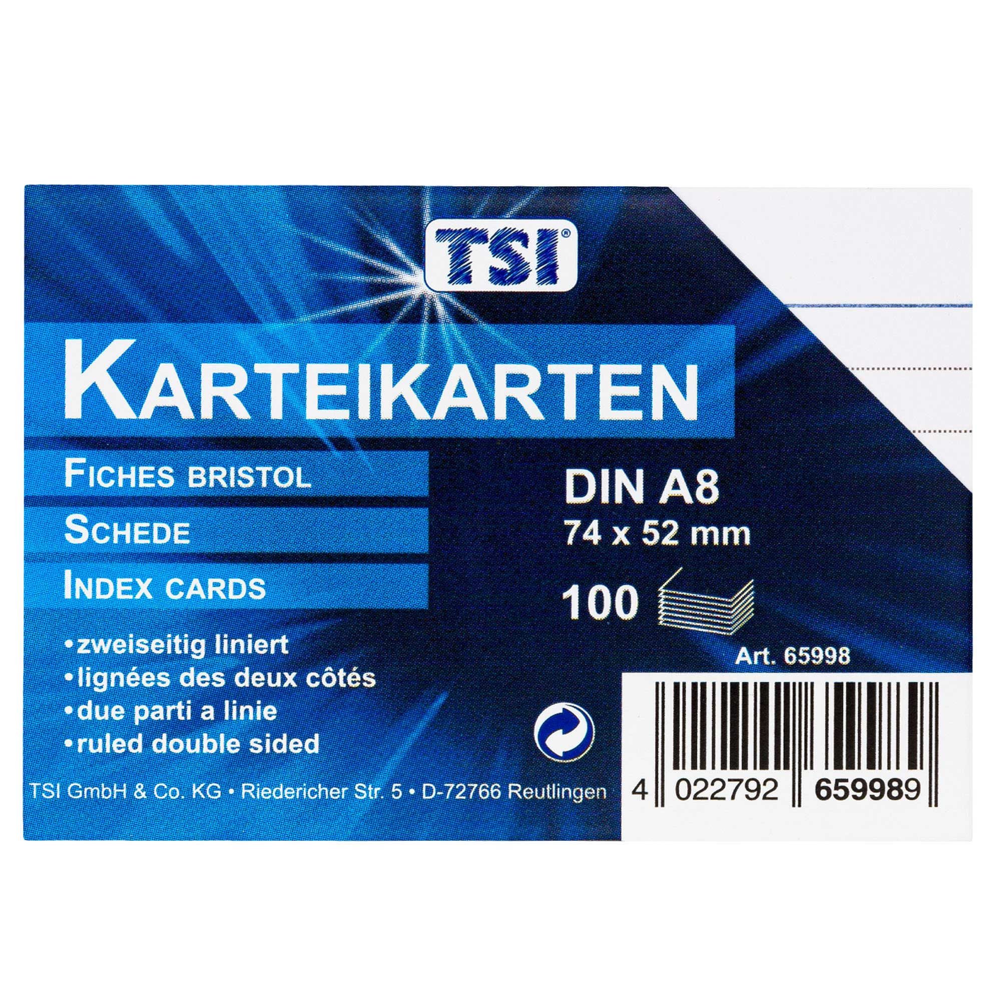 • TSI 100x Karteikarten A8 beidseitig liniert weiß DIN A8 74x52 mm 170 g/qm neu