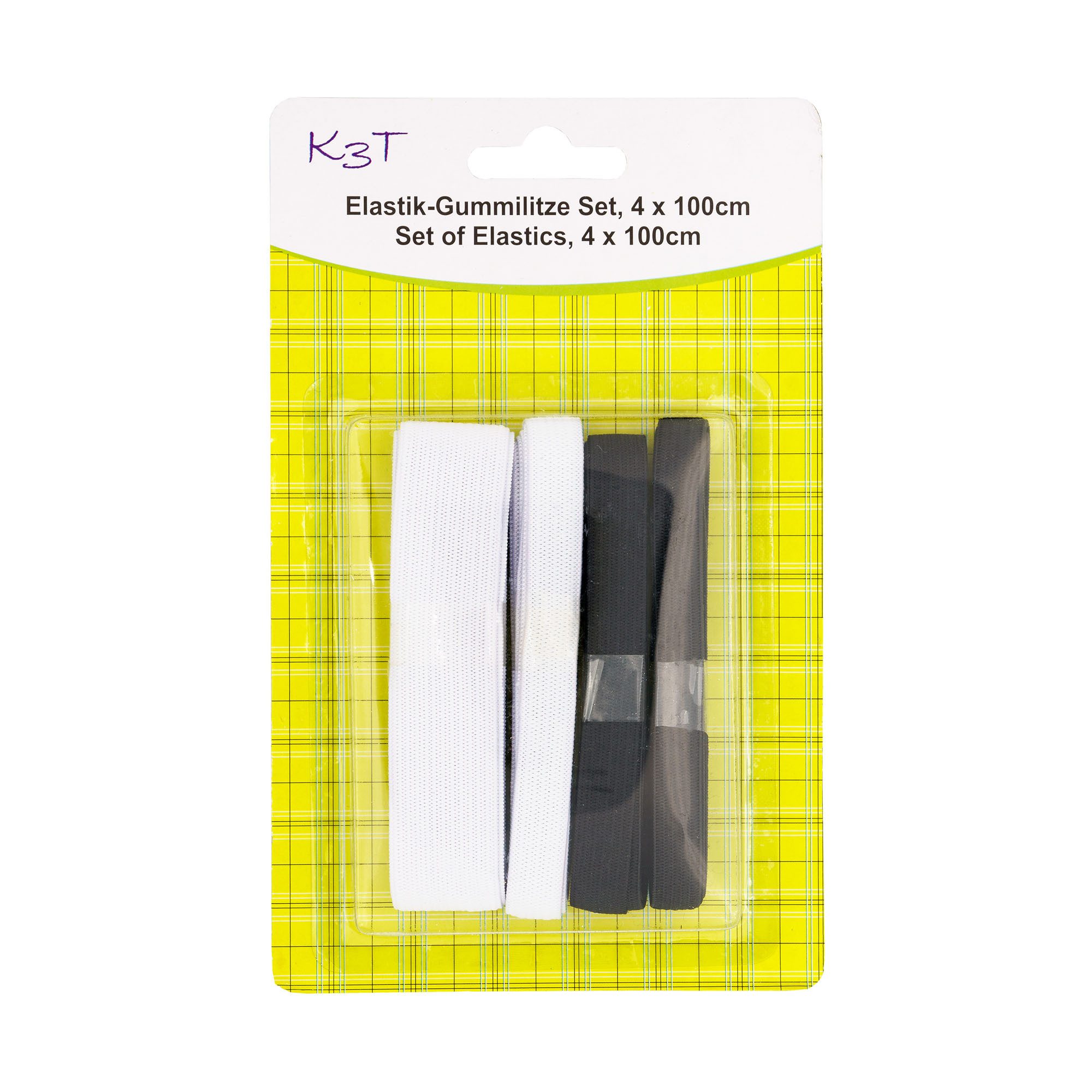 Gummiband Elastik-Gummilitze-Set, 4-teilig, je 100cm, schwarz und weiß