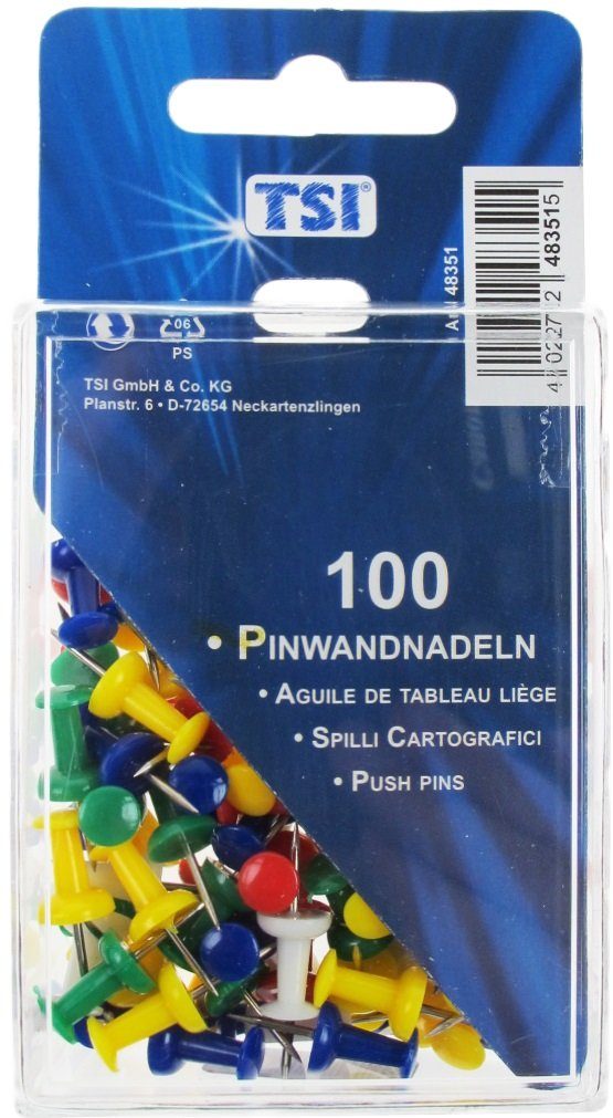 TSI Schreibwaren Pinnwand 100 Pinnwandnadeln / farbig