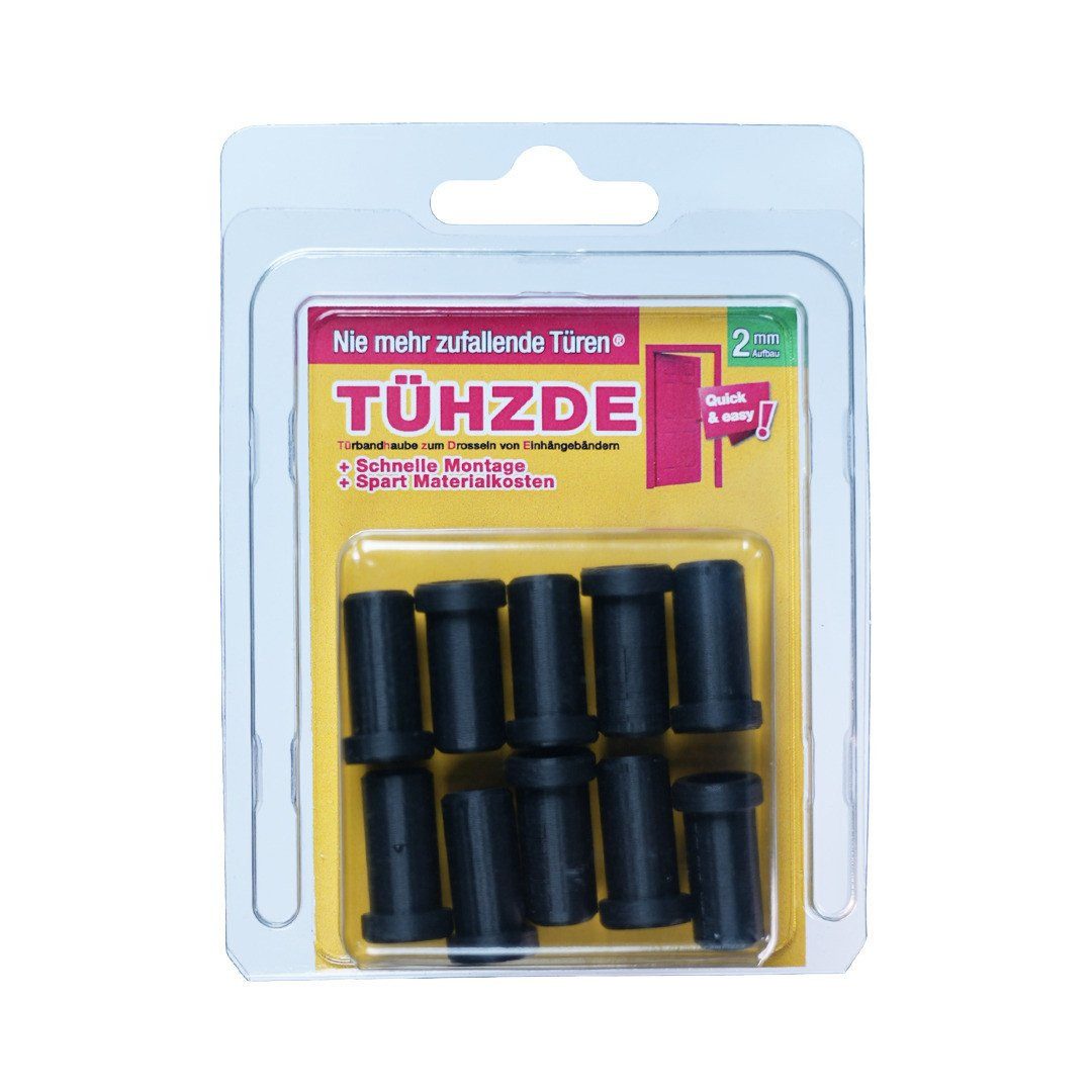 Produktdetails: Die innovative Lösung für zufallende und schleifende Zimmertüren | Erhältlich in drei unterschiedlichen Aufbauhöhen | Einfache Montage, Langlebig und wartungsarm | Geeignet für zweiteilige Bänder mit Dornmaß 7,85mm im Durchmesser | Farbe: Schwarz | Material: Kunststoff | Gewicht: 0,9 Kg | Montageart: Stecken | Anwendungsbereich: Innen | Lieferumfang: 10 Stück | Schnelle und unkomplizierte Montage, Spart Materialkosten, Entwickelt um die Türe zu bremsen, Hebt die Türe um 2 mm an, ideal für Anpassungen bei z.B. Übergangsschienen |