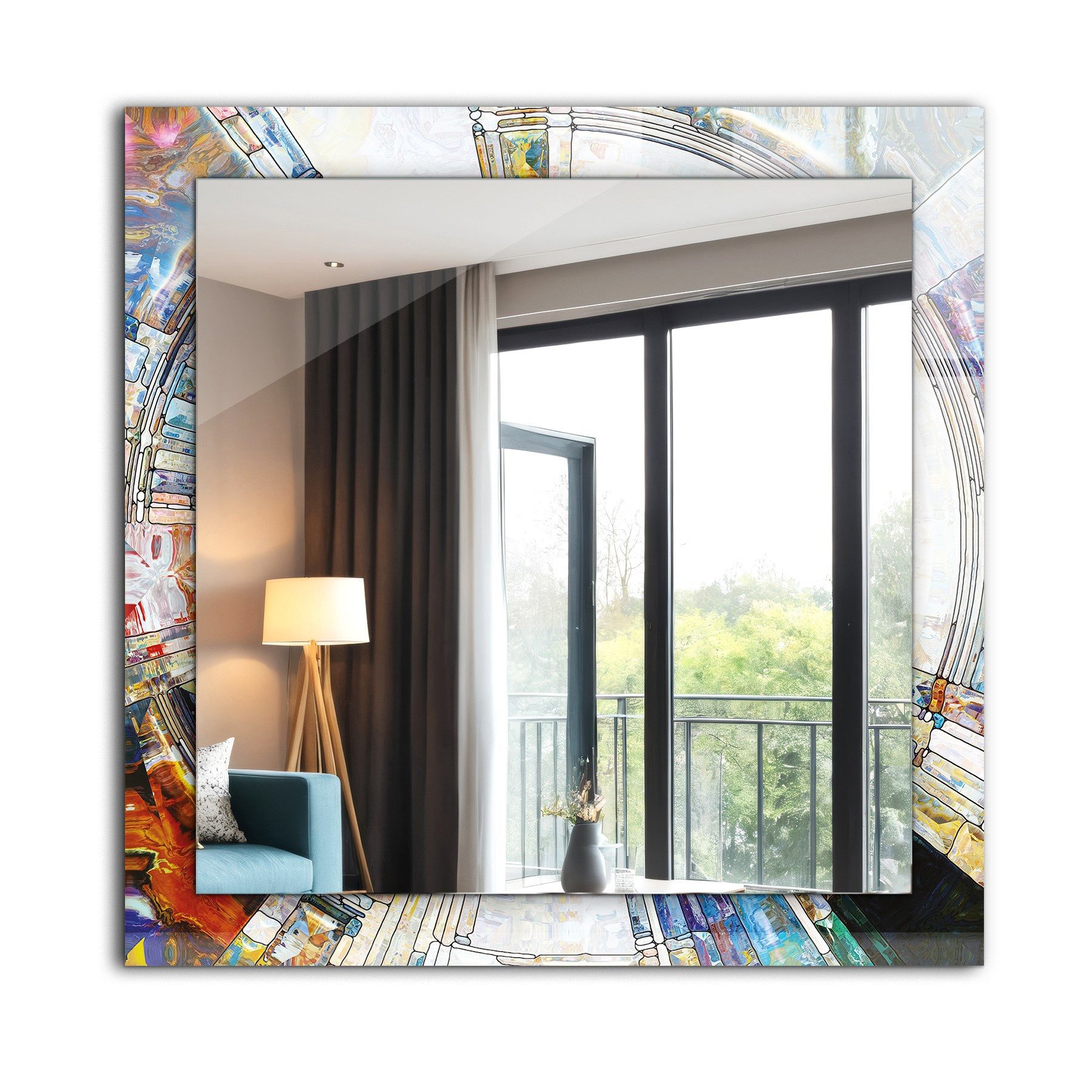Spiegel aus gehärtetem Glas mit moderner Grafik auf einem Glasrahmen - Geschliffene glaskanten.