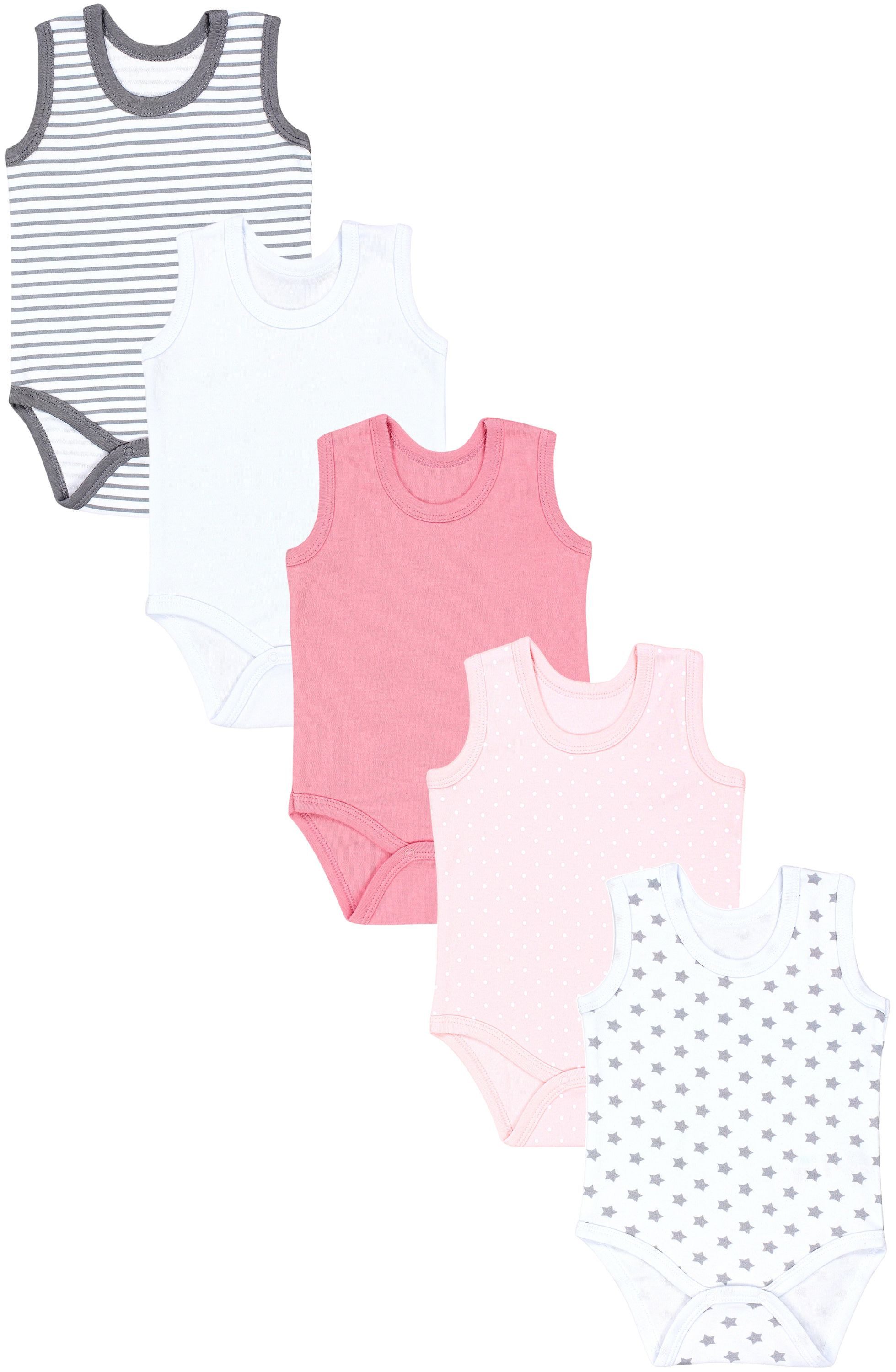 Dieser bequeme Baby Body ohne Ärmel der Kindermarke TupTam passt durch das unifarbene Design zu vielen Outfits und lässt sich zu verschiedenen Gelegenheiten tragen. Der praktische Einteiler kann zudem als Unterwäsche unter einem Strampler oder Schlafsack angezogen werden. Die Druckknöpfe im Schritt erleichtern das An- und Ausziehen und das Wickeln. Das hochwertige Interlock-Jersey Material aus reiner Baumwolle sorgt für optimale Atmungsaktivität und hervorragenden Tragekomfort. Die Passform und Farben beleiben auch nach mehreren Waschgängen erhalten. Lieferbar im günstigen 5er Pack in modischen Farben. Ein grundlegender Bestandteil der Baby Erstausstattung sowie ein ideales Kleidungsstück zum Bemalen auf einer Babyparty!Hergestellt in der EU.