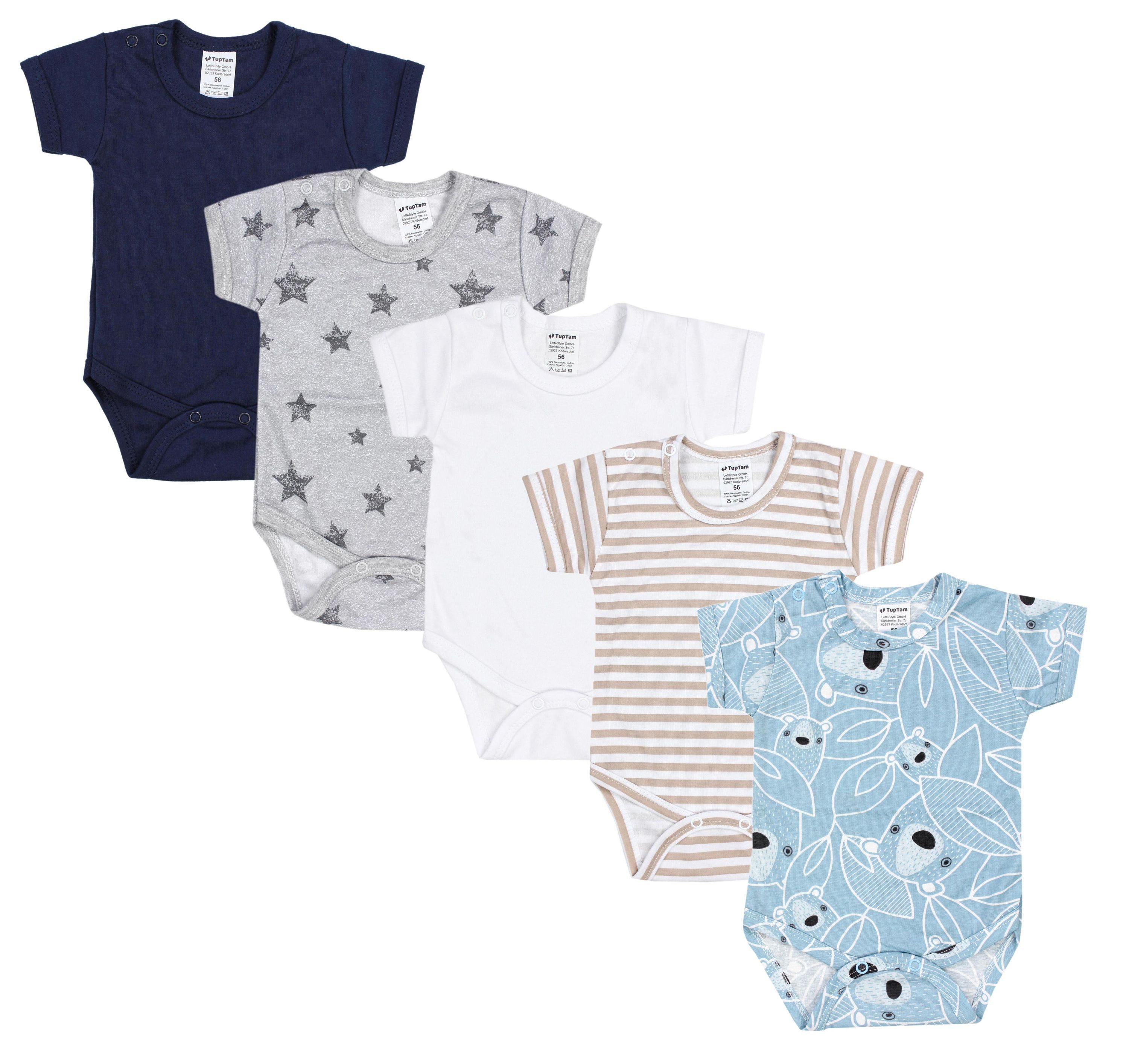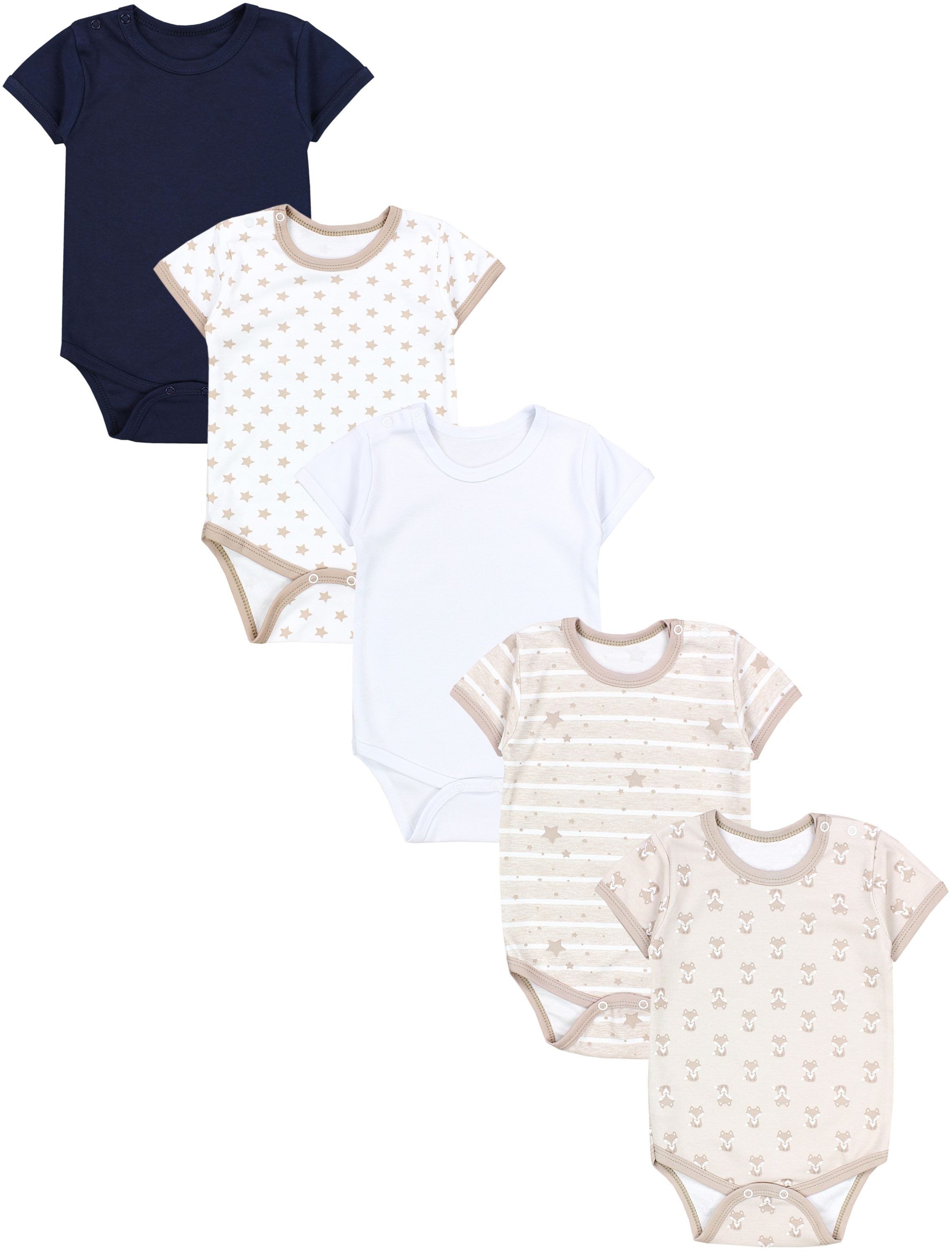 KOMFORTABLER BABY BODY KURZARM – 5er Set Body Baby für Jungen aus atmungsaktiver Baumwolle, ideal als Basic für Sommer oder als Unterwäsche für kühlere Tage.
