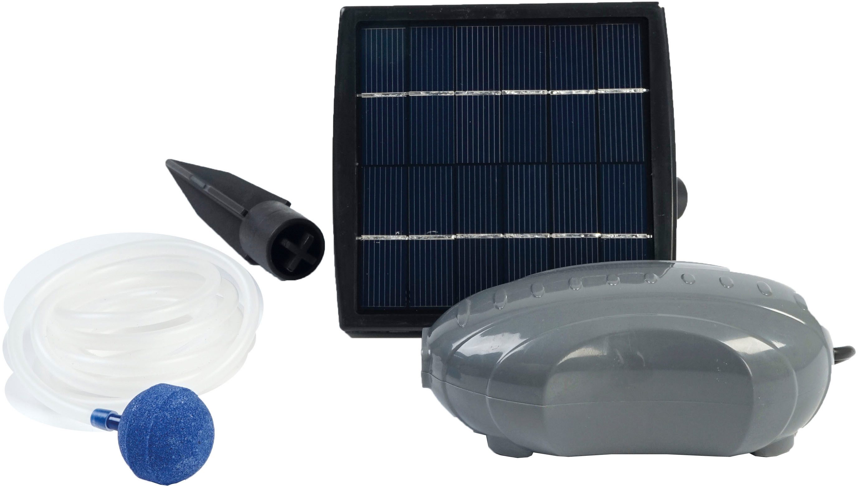 Lieferumfang | Solarpanel, Pumpe, Schlauch, Luftströmerstein, Befestigungsmaterial und Verbindungskabel |